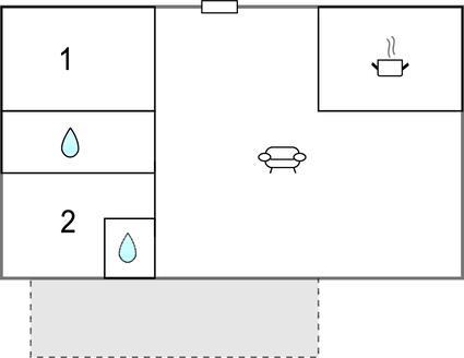 Badezimmer 4m2 (nr. 1) - WC. Warmes und kaltes Wasser. Dusche