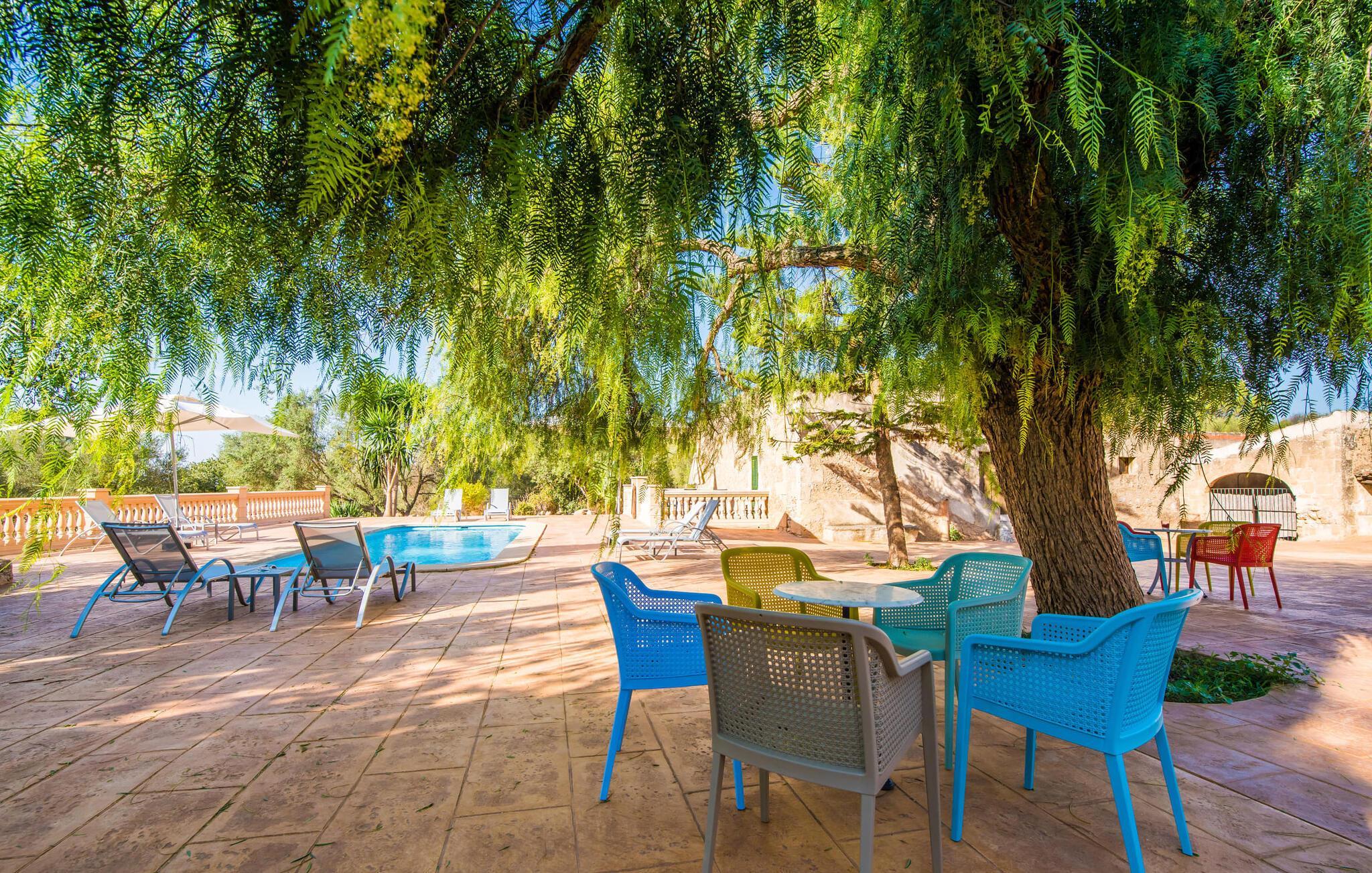Auf einer großzügigen Terrasse, umgeben von einer Mauer und jahrhundertealten Bäumen, können Sie Ihre Privatsphäre genießen. Ihnen stehen bequeme Sonnenliegen und ein Essbereich zur Verfügung. Gleichzeitig haben Sie im großen Innenhof jederzeit die Möglichkeit, mit anderen Gästen ins Gespräch zu kommen. Das abwechslungsreiche Frühstück können Sie morgens im eindrucksvollen Gewölbe oder auf der Freifläche im Außenbereich genießen. Neben den beiden großen Pools und dem 90 cm tiefen Kinderbecken mit Sonnenliegen bieten verschiedene Freizeiteinrichtungen vor allem für Familien viel Abwechslung.
