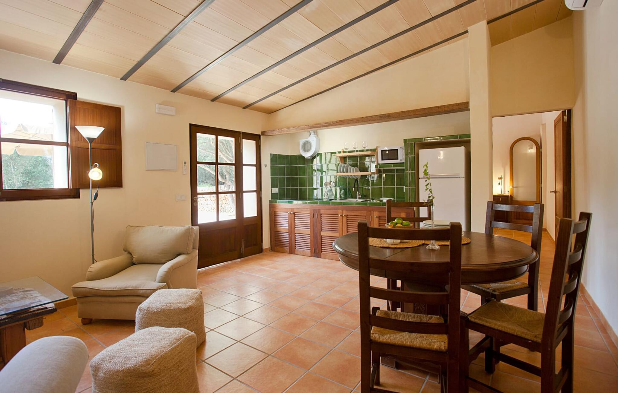 Die vollklimatisierte Wohnung „Agroturismo Es Bosc“ bietet Ihnen eine ländlich-moderne Unterkunft mit eigener Terrasse. Sie betreten direkt das Wohn-Esszimmer mit Küchenbereich, der über alles verfügt, was Sie zur Selbstversorgung benötigen. Rechts und links vom Wohnbereich befinden sich zwei stilvolle Schlafzimmer mit jeweils eigenem Bad. Diese stilvolle Landwohnung auf Mallorca versteht es, Privatsphäre und Gemeinschaftlichkeit hervorragend zu vereinen. Es erfüllt gleichermaßen die Bedürfnisse nach Ruhe und Aktivität.