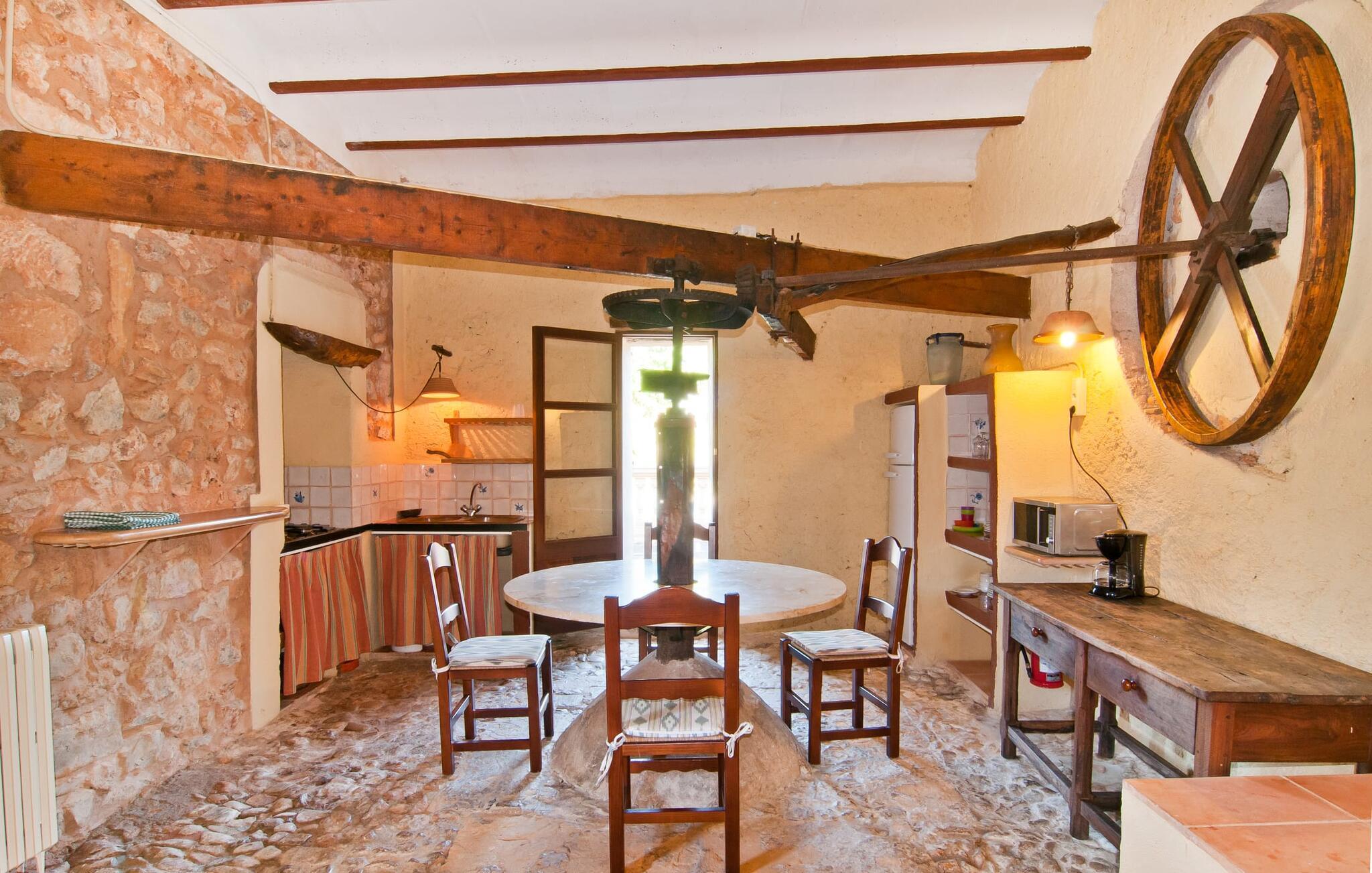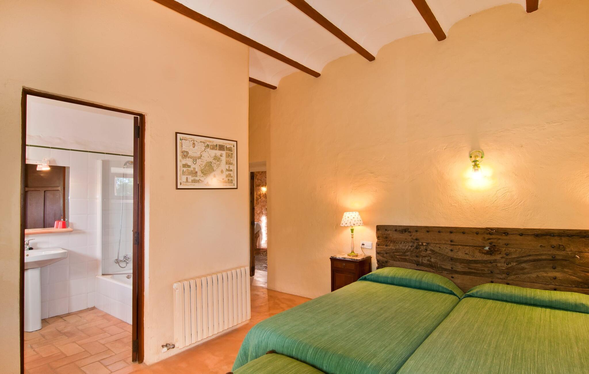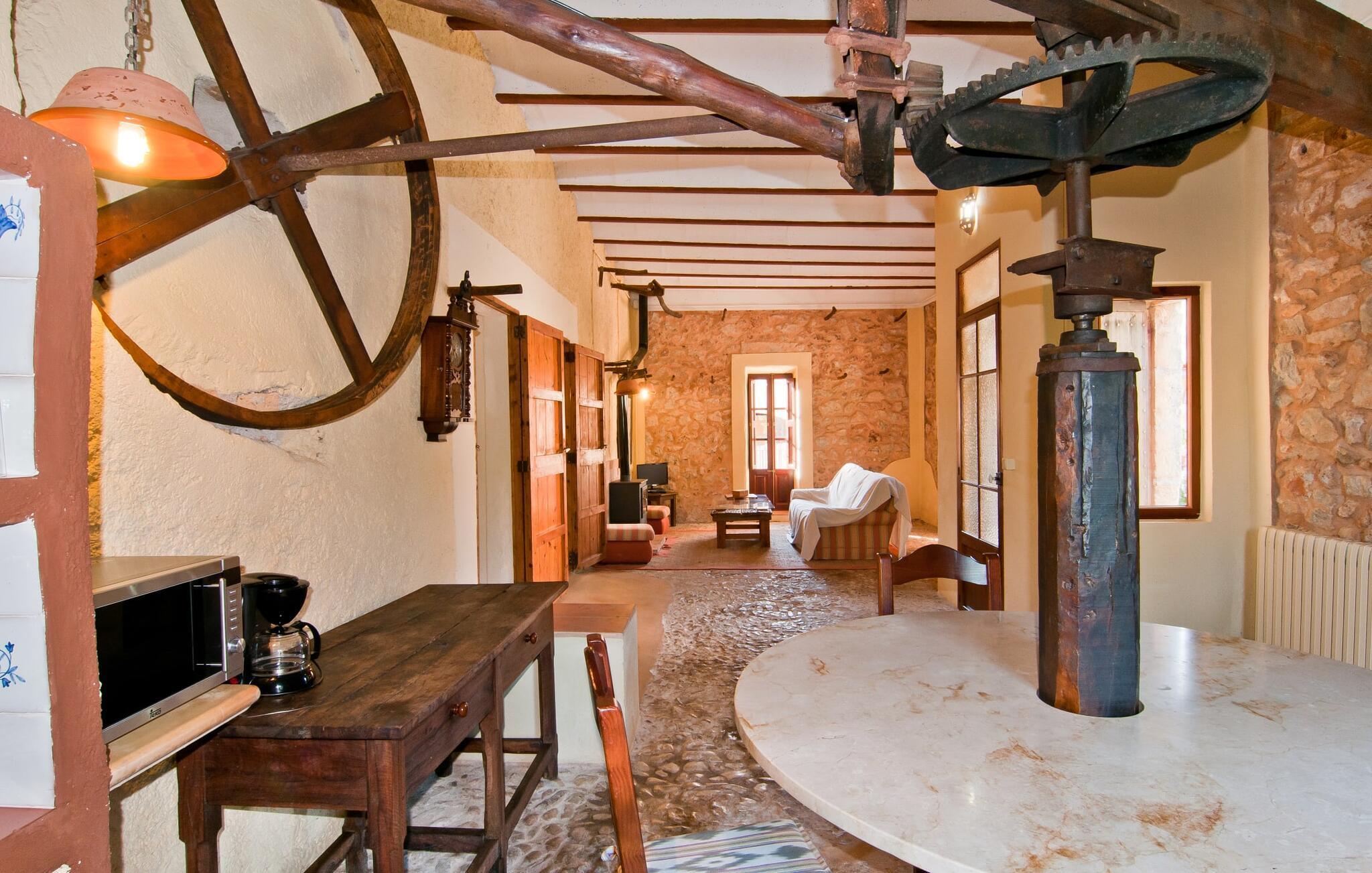 Vielleicht ist es diese Wohnung mit ihrer einzigartigen Geschichte. „Es Moli“, die „Getreidemühle“, ist im heutigen Wohnzimmer vollständig erhalten und dient als einzigartiger Tisch. Früher lief hier ein Esel oder ein Maultier im Kreis und drehte die Mühlsteine. In den Schlafzimmern wurde das Getreide gelagert. Beide Doppelzimmer verfügen über ein eigenes Badezimmer mit Duschwanne. Das gemütliche Wohnzimmer ist mit einem Sofa, einem Fernseher und einem rustikalen Kamin ausgestattet, der bei Bedarf für eine besondere Atmosphäre und Wärme sorgt. An den Tagen, an denen Sie den ganzen Tag auf dem Anwesen bleiben möchten, können Sie in der Küchenzeile mit Kühlschrank, zwei Cerankochfeldern, Mikrowelle und Kaffeemaschine Snacks, Salate und kleine Mahlzeiten zubereiten. Neben Tisch, Stühlen und Sonnenschirm verfügt die Terrasse über eine kleine Tür, sodass Sie absolute Privatsphäre haben. Gleichzeitig haben Sie den Pool und Ihre Kinder, die darin planschen, im Blick. Gönnen Sie sich zwischendurch eine Verschnaufpause mit einem guten Buch. Und es gibt eine Reihe lohnenswerter Ziele: Stadtleben oder Meeresbrise? Von Ihrer Villa-Unterkunft aus können Sie bequem die verschiedenen Seiten der Insel erkunden. Gut 15 km entfernt warten die Strände auf Sonnenanbeter, Surfer und Familien. Das weitläufige Son Serra de Marina und der fast zwei Kilometer lange Sandstrand in Richtung Colònia de Sant Pere bieten genügend Platz, um mehr als nur ein Handtuch auszubreiten. Wenn Sie die Blautöne von oben genießen möchten, fahren Sie nach Betlem und erklimmen die 5 km zur kleinen Ermita. Selbstverständlich sind auch anspruchsvollere Routen für Wanderschuhe und Mountainbikes möglich. Die Ma-3322, die je nach Windrichtung teilweise hörbar ist, führt Sie in die Stadt Manacor für einen spontanen Ausflug in die historische Innenstadt oder zum Einkaufen auf dem Vitaminmarkt. Wenn Sie die Kathedrale in Palma besichtigen möchten, lassen Sie Ihr Auto einfach am Bahnhof stehen und nehmen Sie den Bus oder die Bahn. Ferienwohnung im Grünen mit viel Natur für die Villengäste. Fühlen Sie sich wie zu Hause auf dem zwischen Schafweiden und Weinreben gelegenen Agroturismo-Anwesen „Son Sureda“, das über elf Selbstversorger-Apartments und Studios, einen großen U-förmigen Innenhof und mehrere Pools verfügt. Manacor, eine der Metropolen der Insel, ist nur 9 km entfernt. Es eignet sich ideal zum Einkaufen auf dem täglichen Obst- und Gemüsemarkt, für Ausflüge und ein entspanntes Abendessen in einem Restaurant. Und an der Badia d’Alcúdia, in Richtung Son Serra de Marina und Colònia de Sant Pere, findet man noch einige Strände, die noch nicht überfüllt sind.