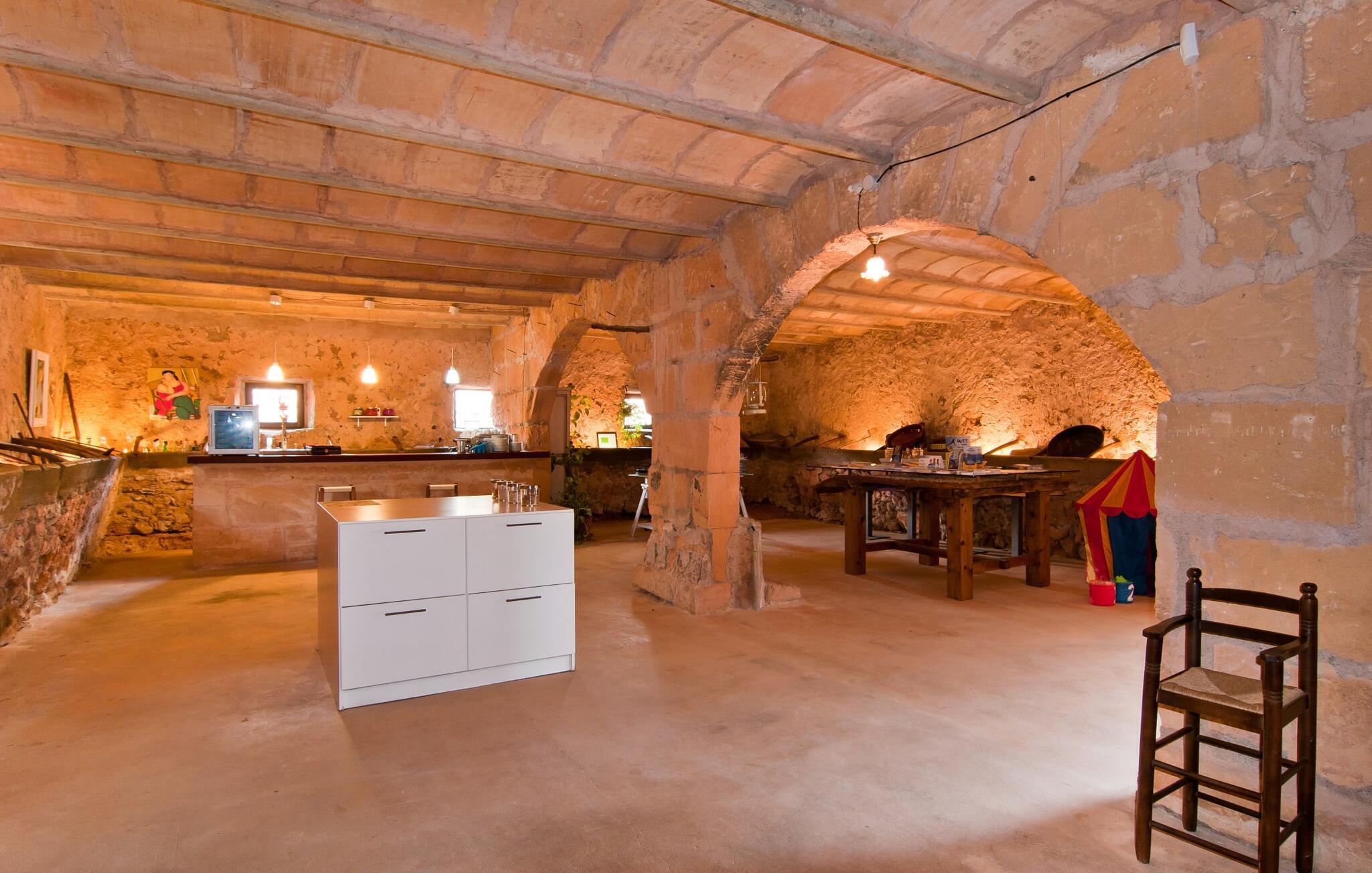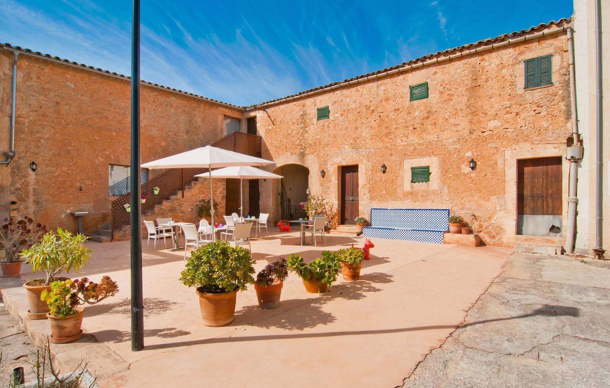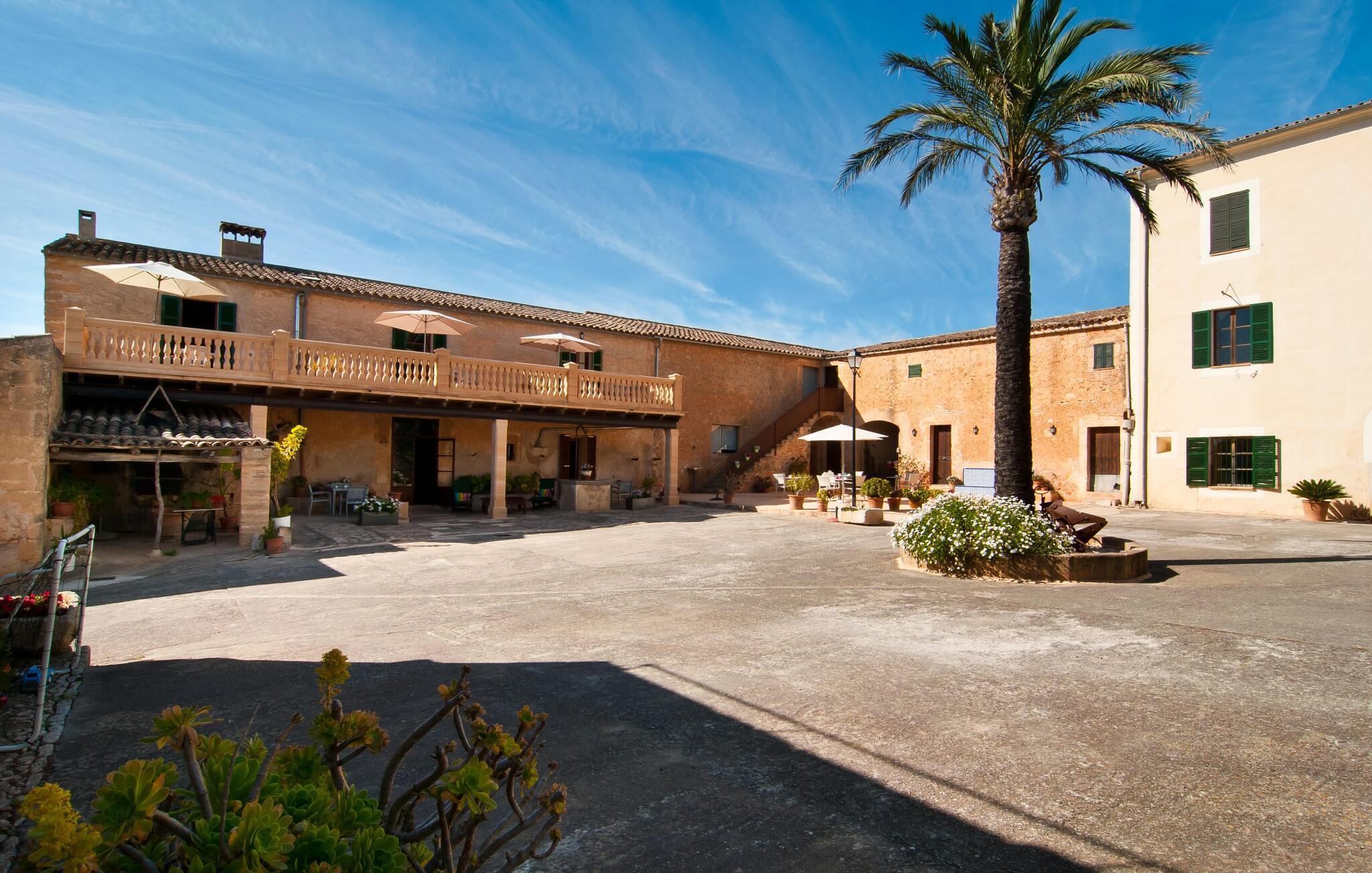 Das beeindruckende Anwesen „Son Sureda“ mit seinen 1.500.000 m² hat sich nach 500 Jahren Landwirtschaft, Weinbau und Viehzucht auf kleine und große Urlaubsgäste eingestellt. Die Namen der elf Ferienwohnungen, die rund um das Haupthaus, das Bürgermeisterhaus und die Nebengebäude mit einem oder zwei Doppelzimmern verteilt sind, weisen noch auf ihre frühere Nutzung hin. Auf Ihren Spaziergängen rund um die alten Mauern entdecken Sie viele alte Pferdewagen und interessante landwirtschaftliche Geräte. Auf Ihren eigenen kleinen Terrassen im Erdgeschoss oder mit Ausblick genießen Sie Ihre Privatsphäre und haben die Möglichkeit, andere Urlauber an den vielen Tischen und Stühlen oder beim Gemeinschaftsgrill im großen Innenhof kennenzulernen. Ihren Mallorca-Morgen können Sie im beeindruckenden Gewölbe (den ehemaligen Pferdeställen) oder draußen auf dem offenen Gelände mit einem üppigen, inseltypischen Frühstück beginnen, das Sie bestellen können. Zwei Pools mit Liegen und Außendusche, ein Planschbecken, ein Spielplatz mit Schaukel, Sandkasten, Klettergerüst, Fußballplatz sowie Hühnerställe sorgen sowohl für Erholung für Alleinreisende und Paare als auch für einen Urlaub auf dem Bauernhof Familien. Wir sind sicher, dass es eine Wohnung gibt, die genau zu Ihnen passt.