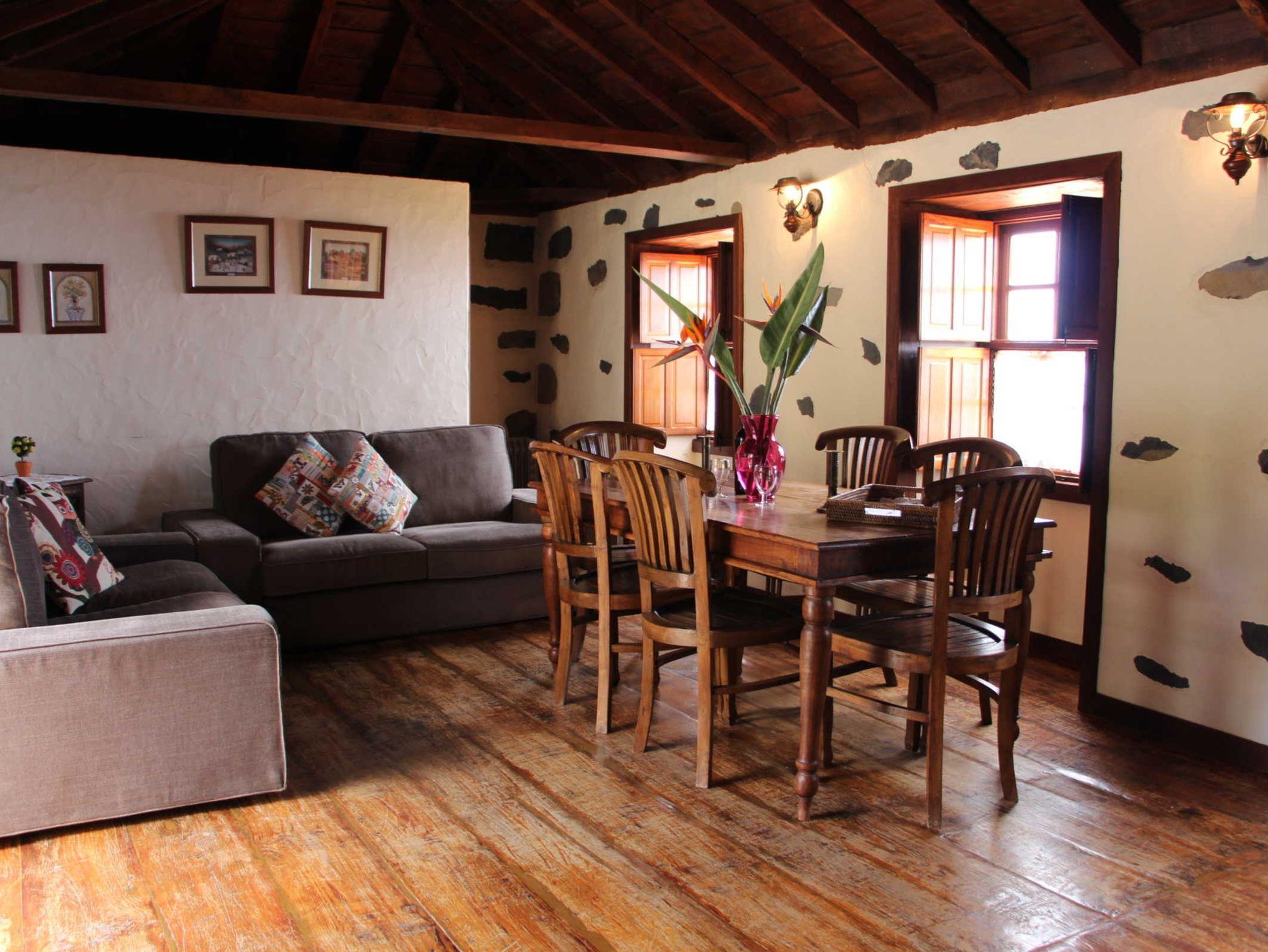 Casa Pinillo ist ein großzügig geschnittenes Landhaus auf zwei Etagen mit insgesamt 150qm Wohnfläche. Das Haus wurde orginal erhalten und besticht durch seinen kanarischen Stil mit schönem Holzdach und eingezogenen Holzbalken sowie einem schönen Dielenboden und den kleinen Holztäfelchen an den Fenstern.