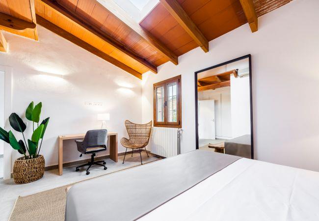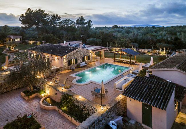 a) Ca's Misser: beautiful old house full of charm and history. This house is composed of a main building, with a large kitchen-dining room, 3 double bedrooms, 2 bathrooms (1 of them en suite with the master bedroom), a beautiful room in the oldest part of the house and a spacious loft.Accessory and next to the large pool that has this house, we find an annexed building that is completely independent. This building has 1 double bedroom, 1 single bedroom, 1 bathroom, 1 kitchen and a living-dining room. Its location next to the pool makes this stay a perfect location to enjoy the pool and the good weather of Mallorca.The Ca's Misser farm is registered in the Register of Tourist Housing, with a capacity of up to 9 adults (over 12 years).