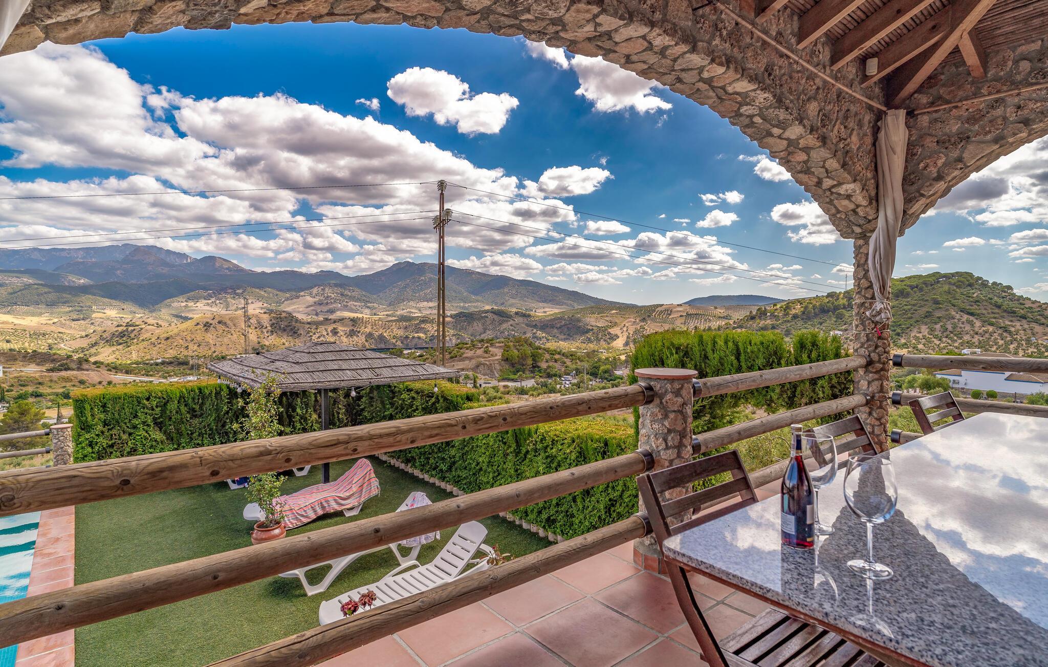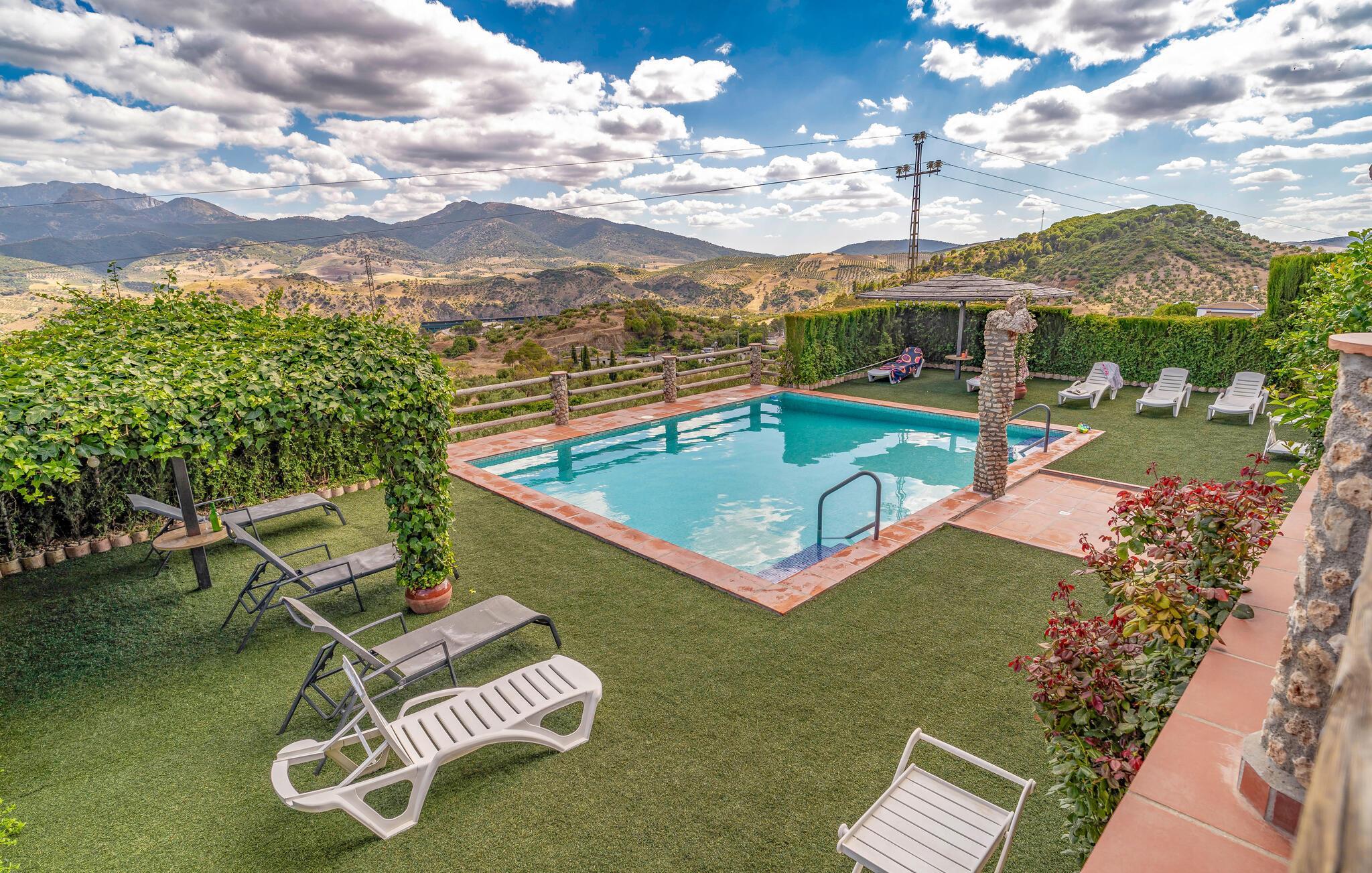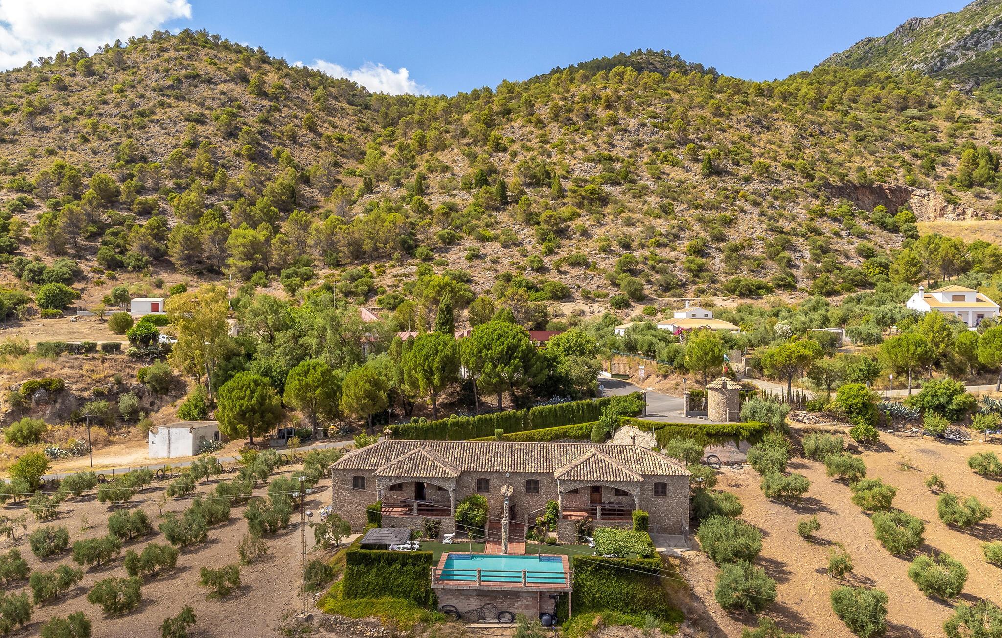 Umgeben von der bergigen Landschaft Zentralandalusiens empfängt Sie dieses traditionelle und große Steinhaus mit Swimmingpool und Aussicht.
