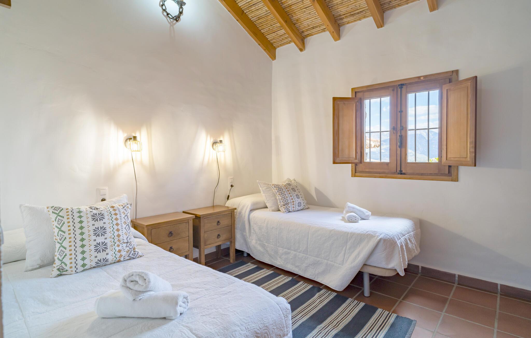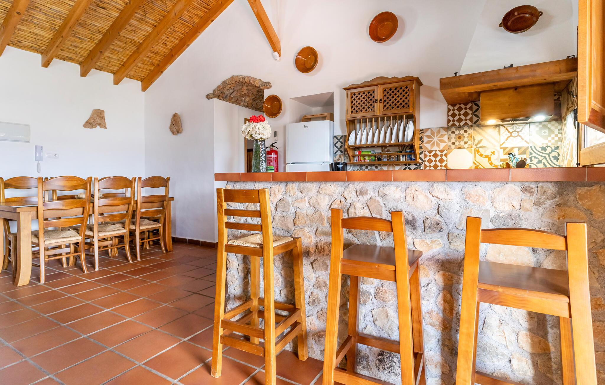 In diesem charmanten Steinhaus erwartet Sie ein einzigartiger Urlaub inmitten der andalusischen Natur. Das traditionell gestaltete Haus, liebevoll dekoriert, bietet Ihnen zwei separate Wohneinheiten – ideal für befreundete Familien, die gemeinsam reisen, aber ihre Privatsphäre bewahren möchten. Die Innenräume strahlen eine gemütliche, rustikale Atmosphäre aus, die zum Verweilen einlädt. Genießen Sie entspannte Stunden auf den zwei überdachten Terrassen oder am Pool, der Ihnen einen atemberaubenden Ausblick auf die umliegende Landschaft bietet.