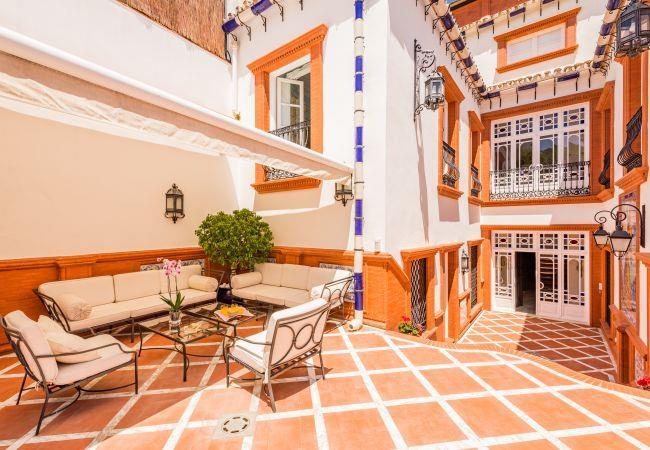 The house combines history and modernity with hand-painted tiles by Sevillian artisans that decorate from the entrance to the kitchen, designed by Clive Christian and equipped with everything necessary for a perfect stay. Among its large spaces, a soundproofed cinema room stands out, a private hammam with spa and sauna (available with supplement), and a semi-basement with a billiards table for endless entertainment.