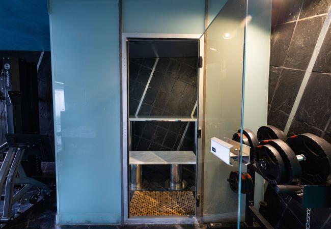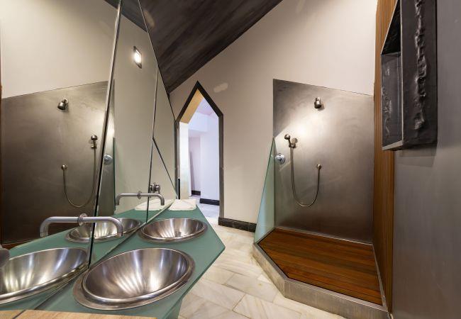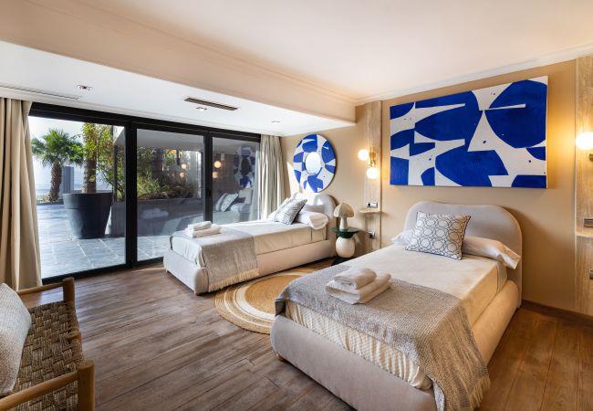- Exclusive bedroom with glass-enclosed jacuzzi and private terrace. Features an en-suite bathroom with shower.