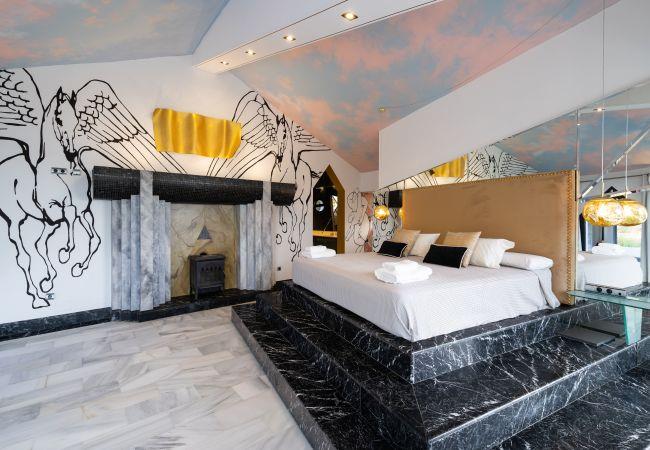 Luxury villa with private pool, jacuzzi, Turkish bath, underfloor heating, central heating, indoor heated pool, private gym, panoramic views and high technology in Alhaurín el Grande for up to 12 people
