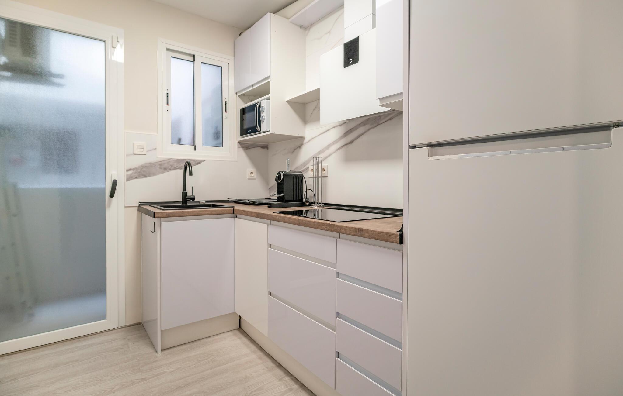 Nur wenige Schritte von Almerías kilometerlangem Sandstrand entfernt, begrüßt Sie diese geschmackvoll eingerichtete Ferienwohnung. Schwingen Sie in der modernen Küche den Kochlöffel und servieren Sie sich leckere Tapas im stilvoll beleuchteten Essbereich. Machen Sie es sich nach einem langen Tag in der Sonne auf den gemütlichen Sofas bequem, vertiefen Sie sich in eine Lektüre oder veranstalten Sie einen geselligen Spieleabend.