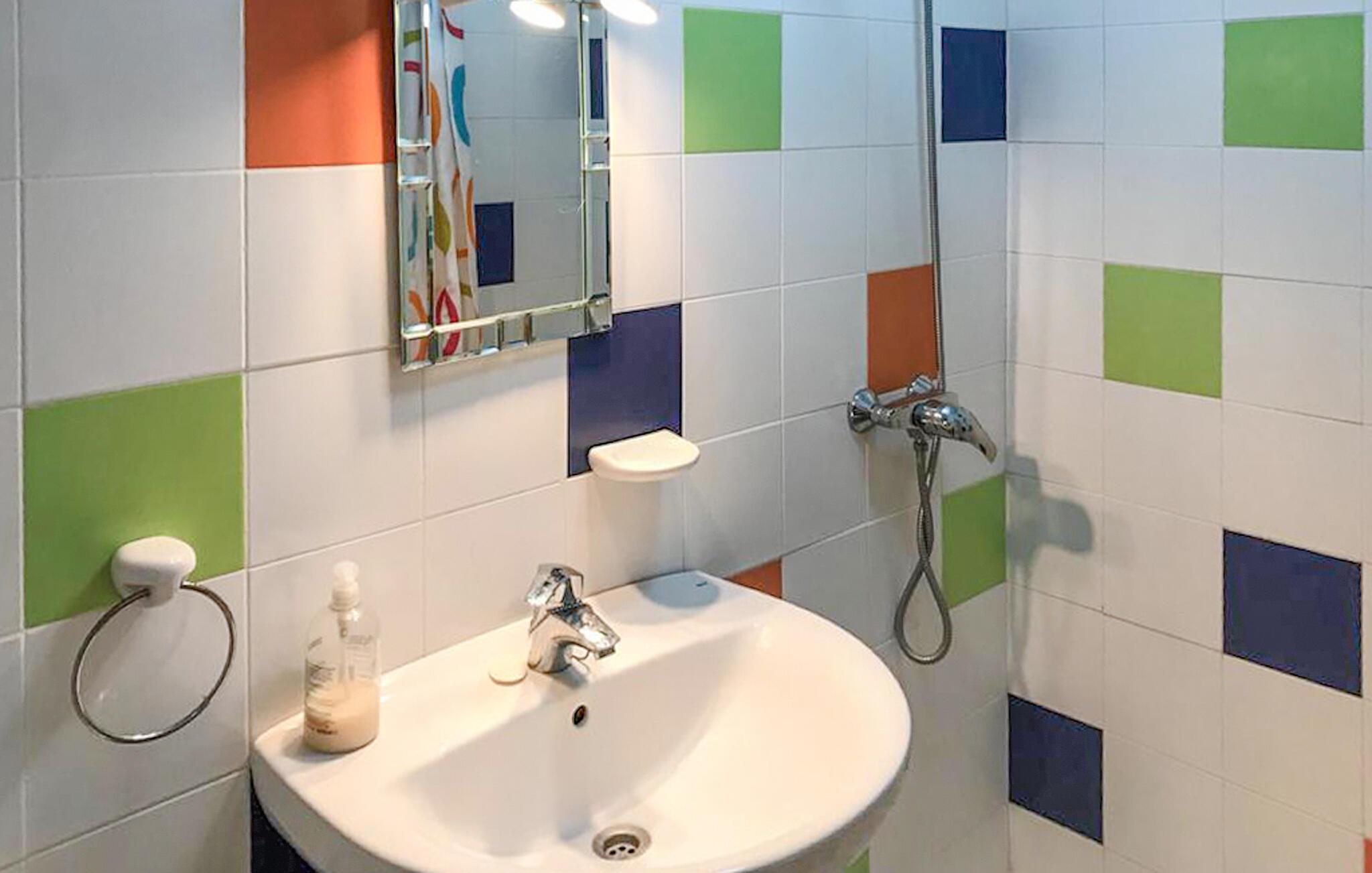 Badezimmer (nr. 1) - WC. Warmes und kaltes Wasser. Handdusche und Badewanne