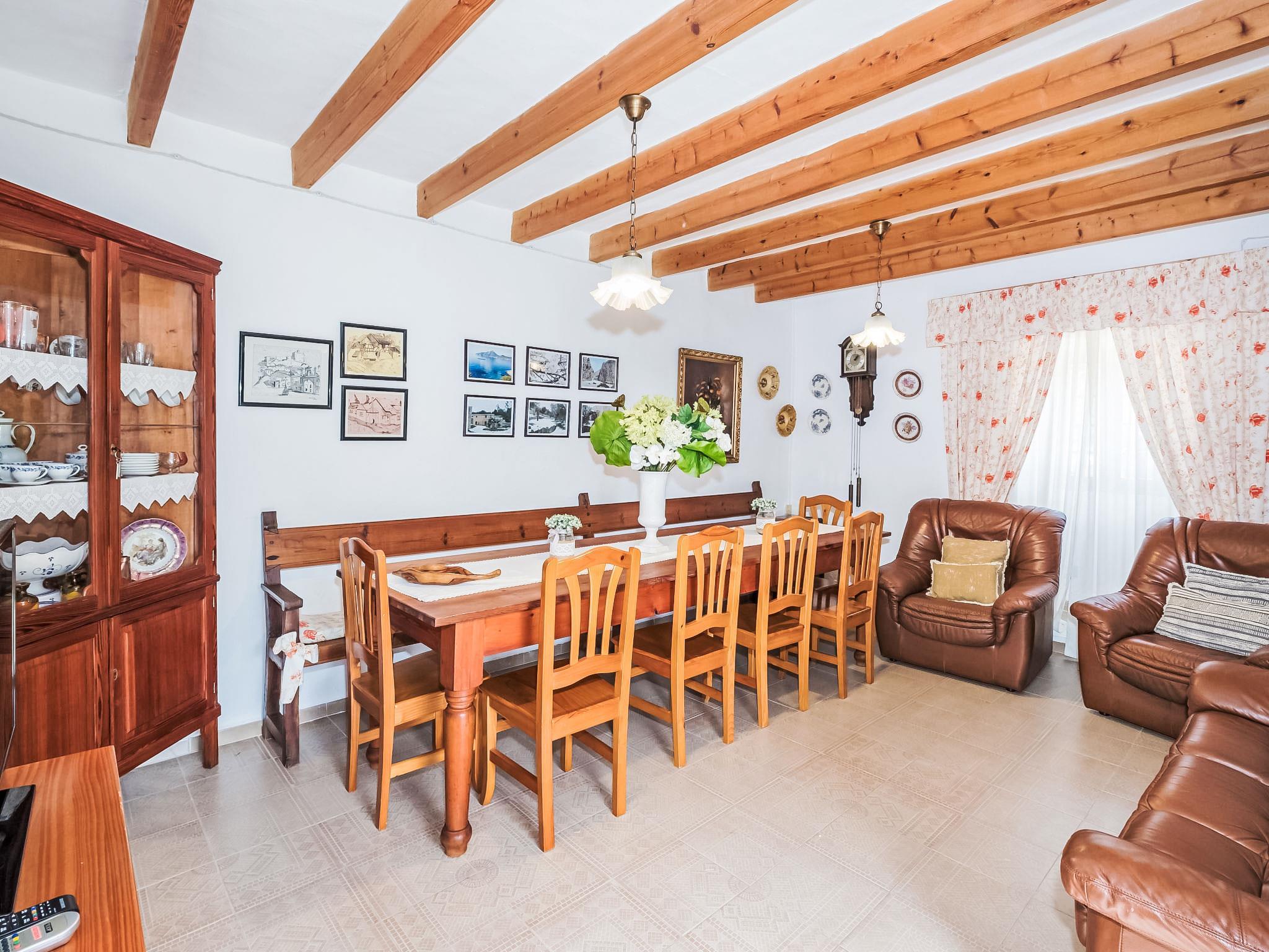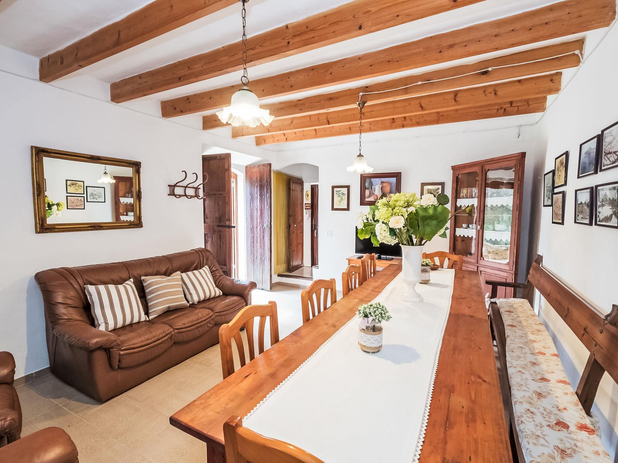 "Can Tiona", 3-room house 100 m2 on 2 levels. Object suitable for 4 adults. Practical and cosy furnishings: living/dining room with dining table, satellite TV and hi-fi system. Kitchen (oven, 3 ceramic glass hob hotplates, toaster, kettle, microwave, freezer) with dining table, radio. Exit to the terrace. Bath/WC. No heating option. Upper floor: 1 room with 2 beds. 1 room with 1 french bed. Patio. Terrace furniture. Beautiful view of the mountains. Facilities: baby cot, hair dryer. Internet (WiFi, free). Suitable for families. Maximum 1 pet/ dog allowed. Electric radiators and ceiling fans in all the rooms. ETV/1373 // Reg. Nr.: ESFCTU00000703200005549300000000000000000000ETV/13734