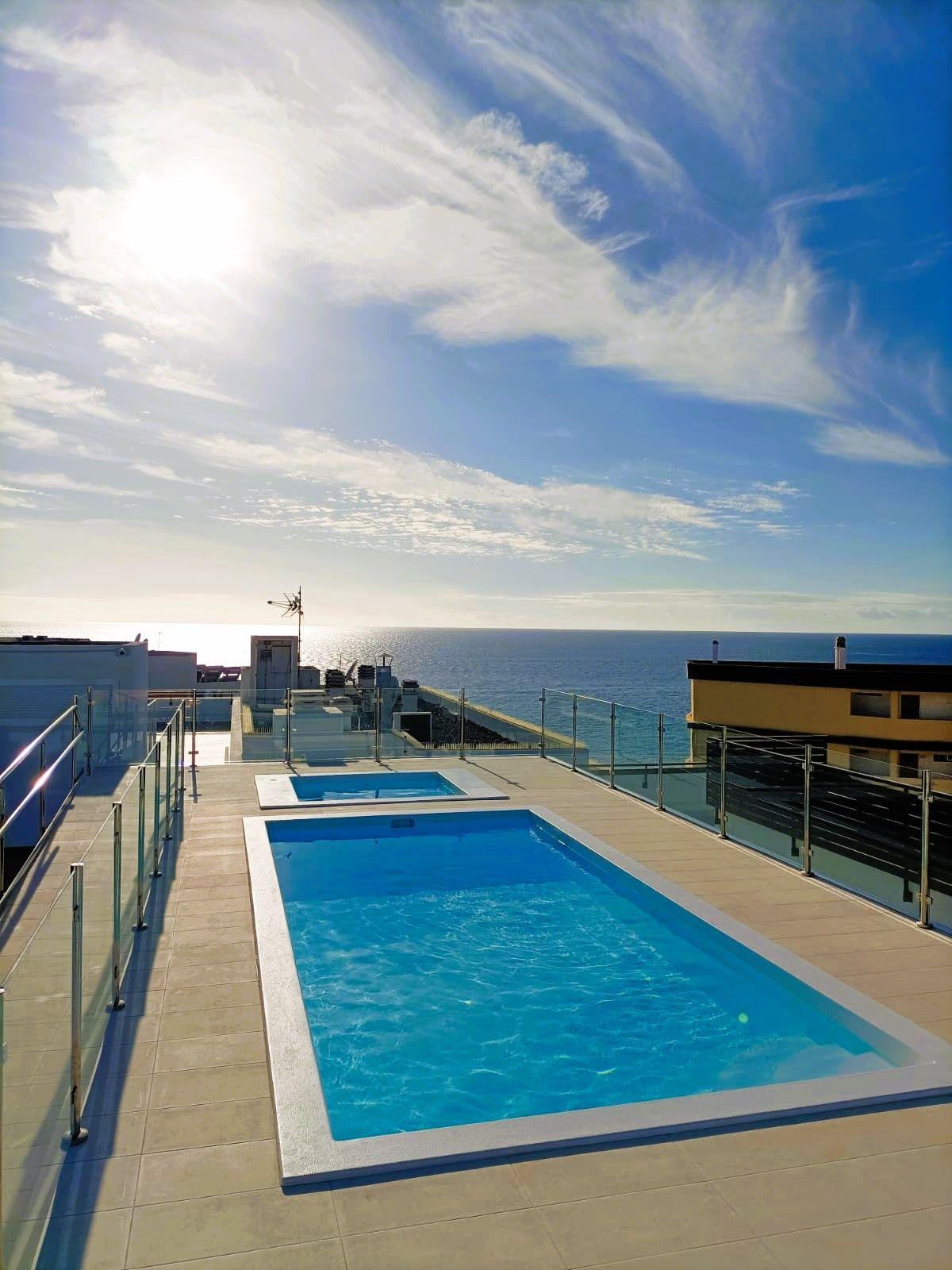 Enjoy this modern flat located only a few steps from the sea and with small swimming pools on the roof terrace where you can relax and sunbathe.