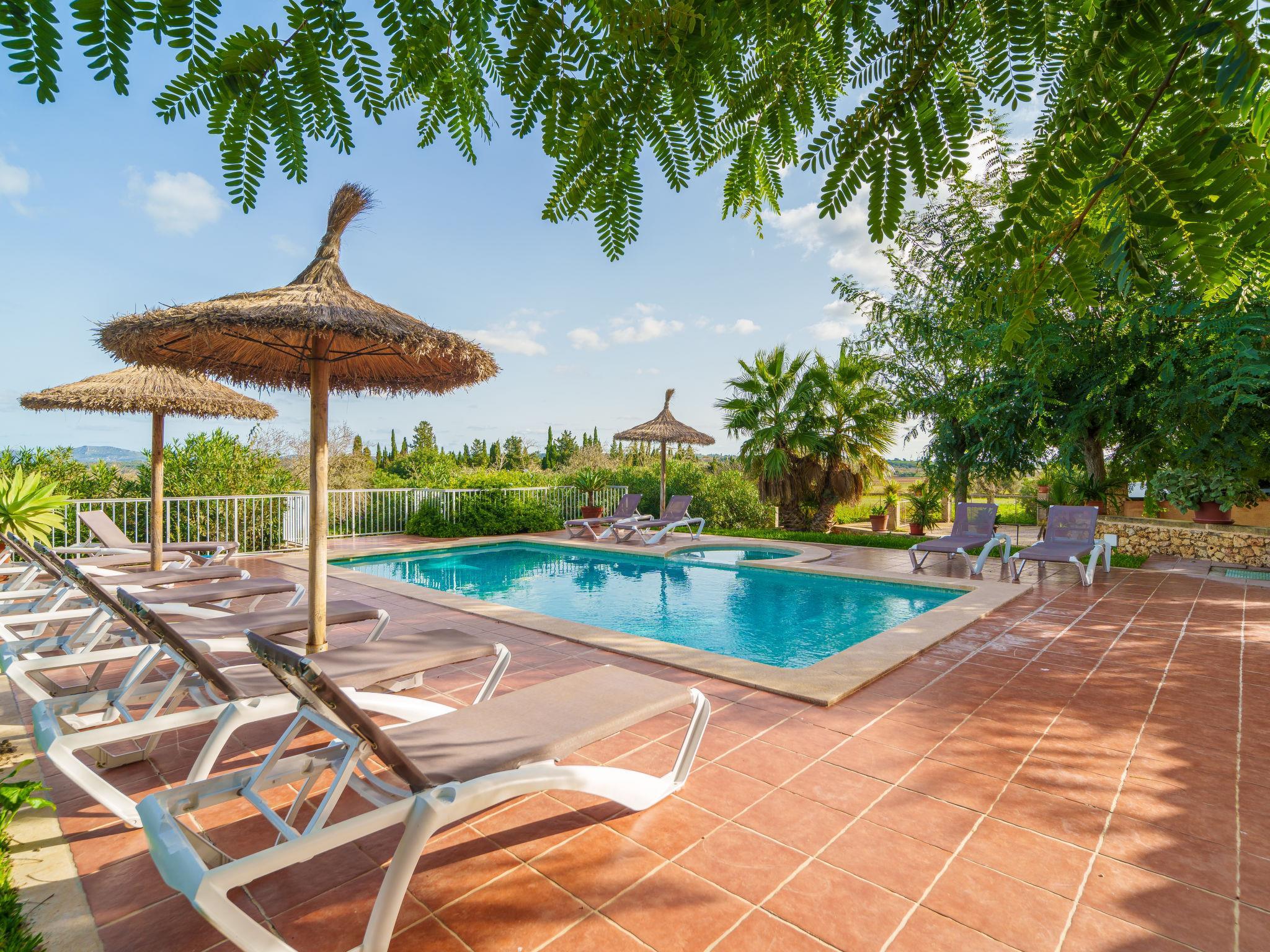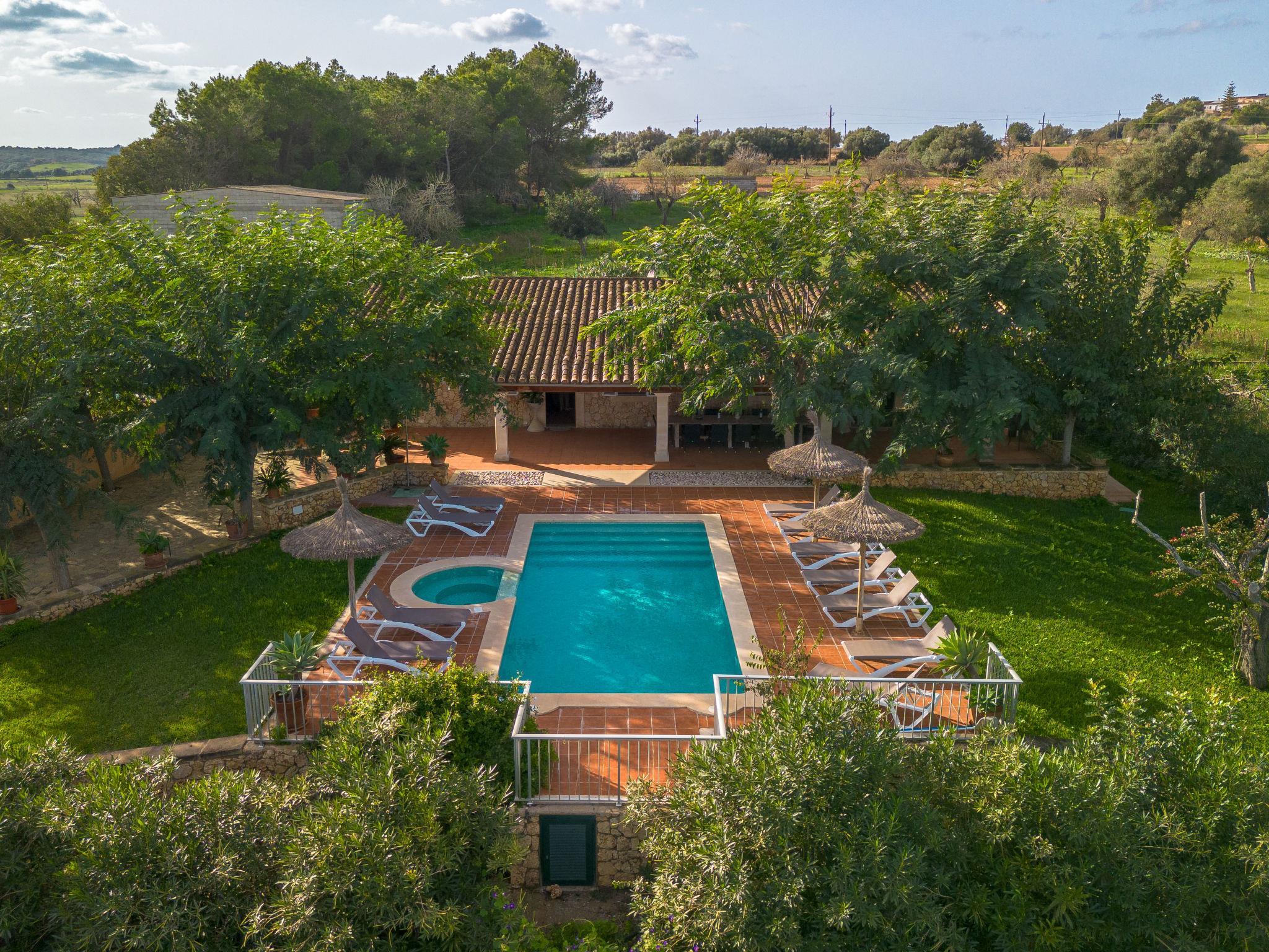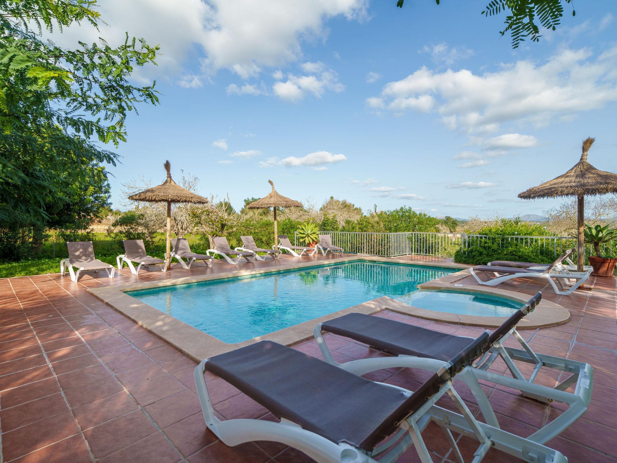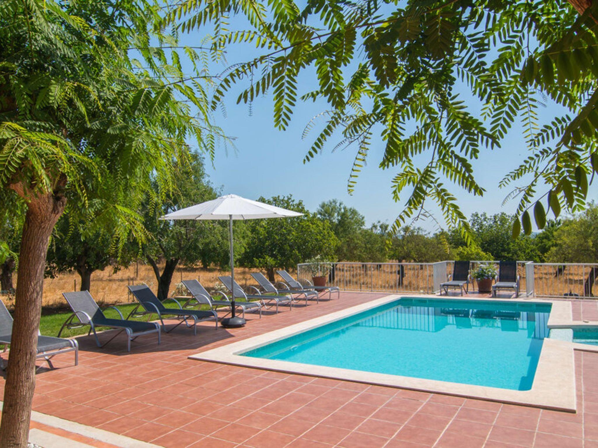 Very beautiful, comfortable villa "Marila", surrounded by fields. Outside the resort, 850 m from the centre of Ariany, in a quiet, sunny position, 18 km from the sea, in the countryside. Private: property (fenced), beautiful garden with lawn and wildlife garden, swimming pool angular (8 x 4 m, 8 m diameter, depth 50 - 200 cm, seasonal availability: 01.Jan. - 31.Dec.). Outdoor shower, hot tub, patio, arbour, garden furniture, barbecue, pool maintenance by the owner/gardener. In the house: internet access, WiFi. Grocery 1.3 km, supermarket 5.5 km, bar 1.2 km, bakery 1.2 km, 10 minute walk to the centre, bus stop "Ariany (41005)" 650 m, sandy beach "Playas de Muro - Can Picafort" 18 km. Sports harbour 20 km, golf course (18 hole) 31.2 km, sports centre 1.6 km, cycle lane 50 m. Nearby attractions: Pueblos:Sta. Margalida,Petra,Vilafranca, Manacor. Hiking paths: Ruta de Petra a Sa Valleta, Rutas Cicloturistas, Serra de Tramuntana. Please note: car recommended. Suitable for seniors. Object suitable for 11 adults. The owner does not accept any youth groups. Airfield 44 km from the property. Property ref. ES8900.101.1 is situated on the same property. The complex has another 2 chalets for rent.