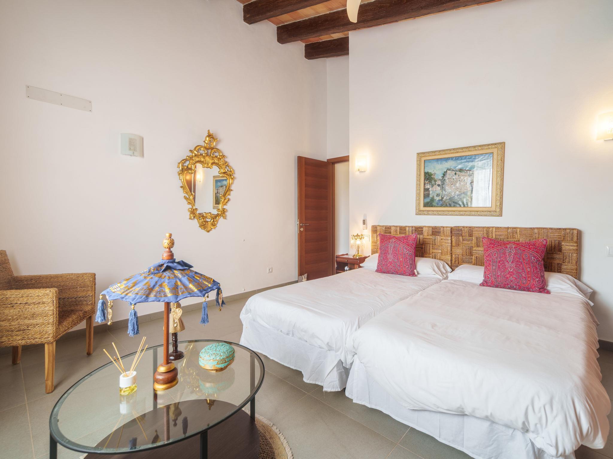 3 km from Artá: Large, modern, beautiful farm estate "Bellpuig", renovated, surrounded by trees and fields. Outside the resort, 3.5 km from the centre of Artà, in a quiet, sunny position, 11 km from the sea, 11 km from the beach, in the countryside. Private: natural state property (fenced), beautiful, well-kept garden with wildlife garden, swimming pool angular (10 x 4 m, depth 140 - 160 cm, seasonal availability: 01.Jan. - 31.Dec.). Outdoor shower, patio, arbour, pergola, garden furniture, barbecue, pool maintenance by the owner/gardener. In the house: internet access, WiFi, storage room for bicycles, washing machine. Parking at the house on the premises. Shop 3.5 km, supermarket 3.8 km, restaurant 3.4 km, bar 3.4 km, bakery 3.6 km, bicycle rental 3.8 km, 48 minute walk to the centre, bus stop "Artà" 3 km, railway station "Artà" 22 km, sandy beach "Cala Bona,Sa Marjal,Cala Millo" 12 km. Sports harbour 12.5 km, golf course (18 hole) 8.3 km, tennis 3.5 km, walking paths from the house 2 km, cycle lane 150 m. Nearby attractions: Artá, Son Servera, Capdepera, St Lorenzo, Artá Local Market (Tuesday 9-14h) 4.7 km, Colonya de Sant Pere, Betlem. Hiking paths: Ermita de Betlem, Parc Natural de Llevant. Please note: car recommended. Suitable for families, suitable for seniors. Object suitable for 4 adults. The owner does not accept any youth groups. Animals in the neighbourhood. Airfield 65 km from the property.