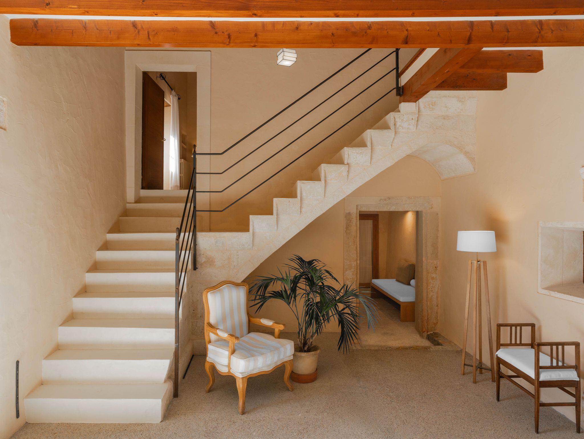 Ihre Steinmauern, Holzbalken und authentischen Details treffen auf moderne Elemente wie Mikrozementböden in der Finca Can Mir und Finca Es Rafal, was eine frische und elegante Atmosphäre schafft, ohne den rustikalen Charme zu verlieren.