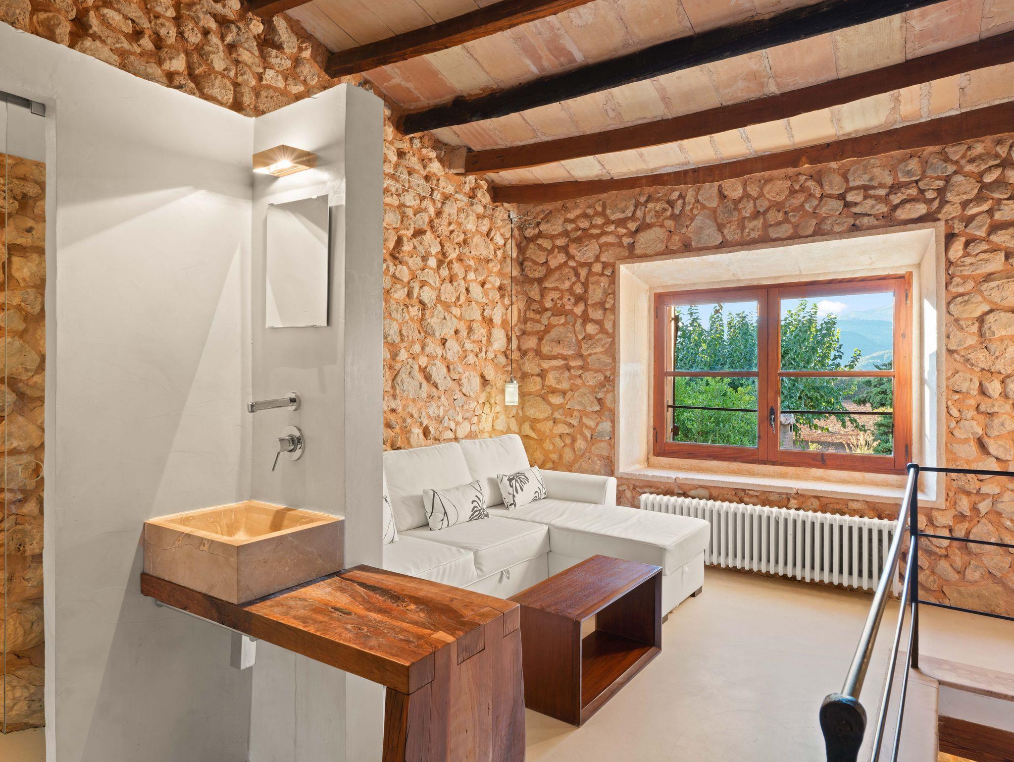 Ihre Steinmauern, Holzbalken und authentischen Details treffen auf moderne Elemente wie Mikrozementböden in der Finca Can Mir und Finca Es Rafal, was eine frische und elegante Atmosphäre schafft, ohne den rustikalen Charme zu verlieren.