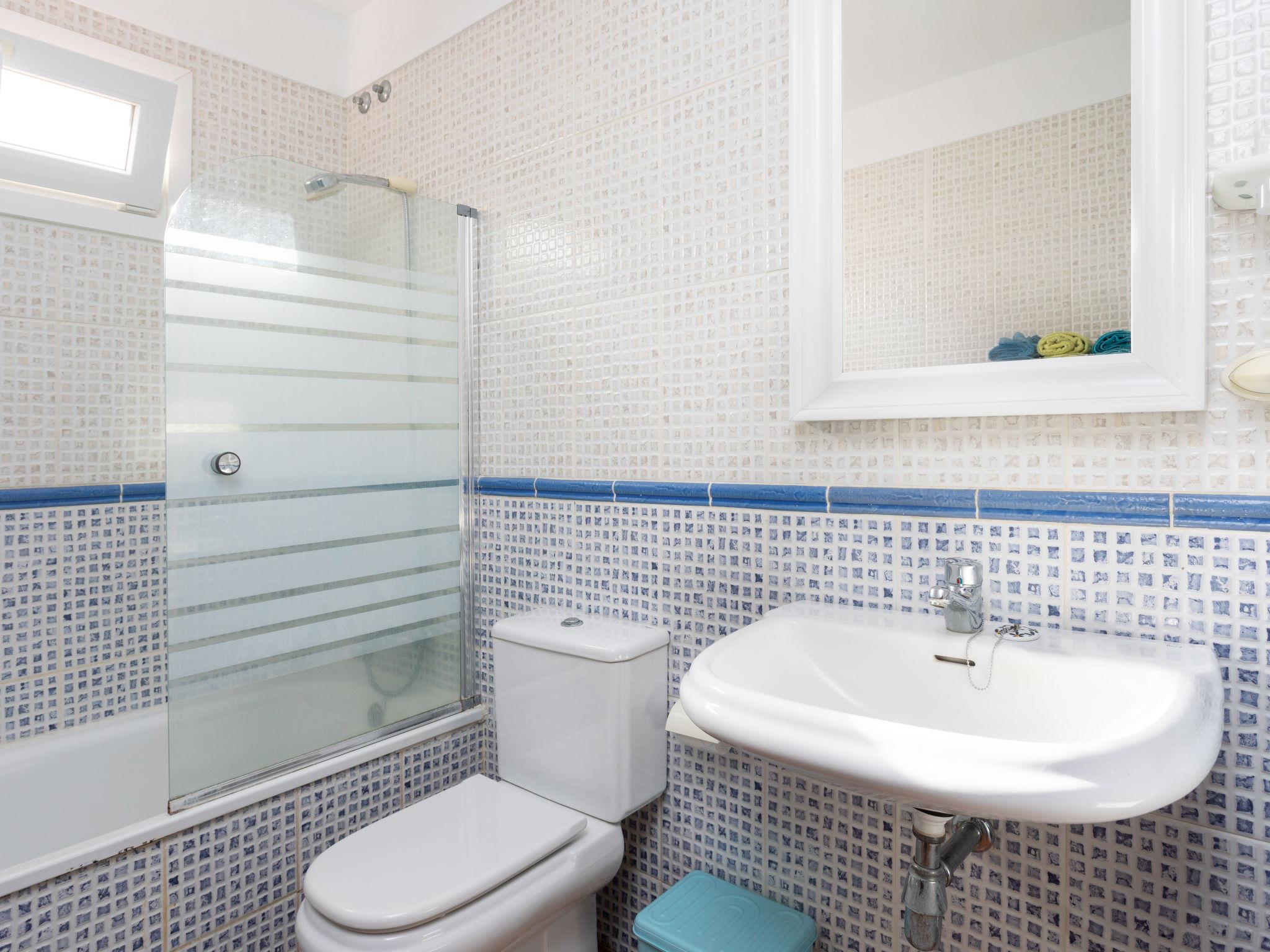 4-room terraced house 140 m2 on 2 levels. Comfortable and cosy furnishings: living/dining room with dining table and TV (flat screen). Kitchen (4 ceramic glass hob hotplates, microwave, freezer, pizza oven). Sep. WC. No heating option. Upper floor: 1 room with 2 beds (90 cm). 1 room with 1 french bed. Exit to the balcony. 1 double bedroom with 1 french bed and bath/bidet/WC. Exit to the terrace. Bath/bidet/WC. Balcony, small terrace, large terrace. Terrace furniture, barbecue, deck chairs, covered balcony, sitting area. View of the sea and the resort. Facilities: washing machine, iron, baby cot. Internet (WiFi, free). Suitable for families. A-38-4-0008974