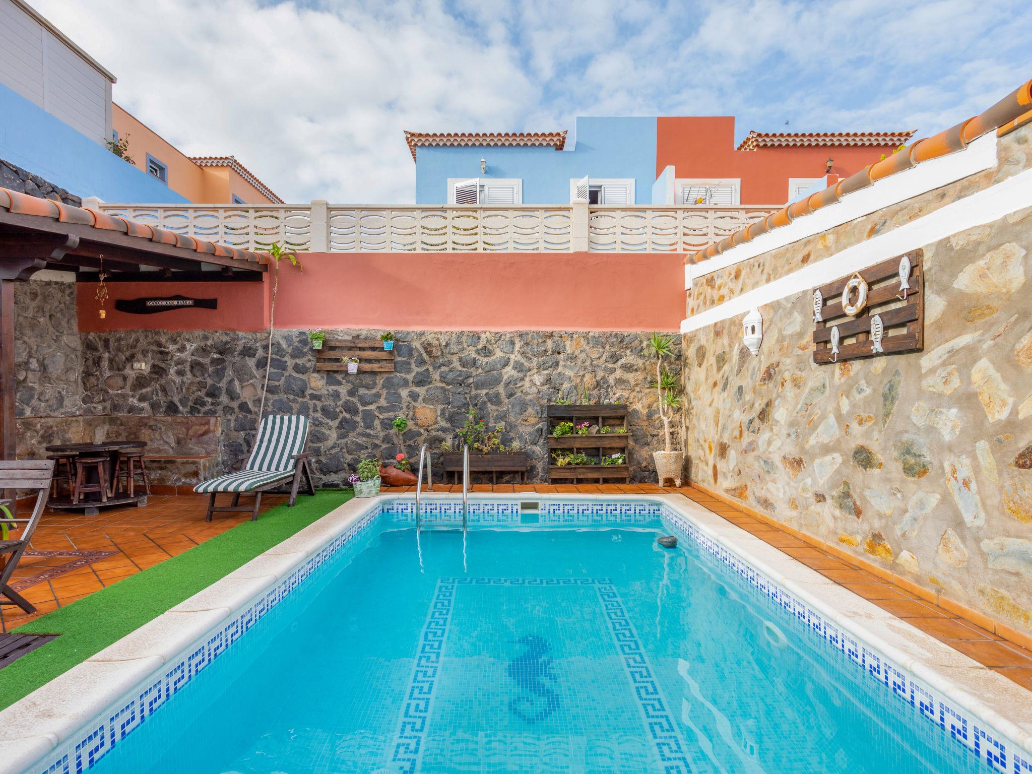 Cosy, comfortable terraced house "La Marea", 2 storeys. In the resort 500 m from the centre of Bajamar, in a quiet position residential area (villas), 100 m from the sea. Private: property 170 m2, swimming pool (5 x 3 m, depth 1 - depth 40 cm, seasonal availability: 01.Jan. - 31.Dec.). Parking on the premises, public parking on the road. Supermarket, restaurant, bus stop 20 m, sandy beach, pebble beach 500 m, outdoor swimming pool. Nearby attractions: San cristobal de la Laguna 12 km. Hiking paths: Parque rural de Anaga 12 m. Please note: car recommended. Groups of teenagers on request only. Neighbourhood highly sensitive to noise. Quietness and good behaviour expected.
