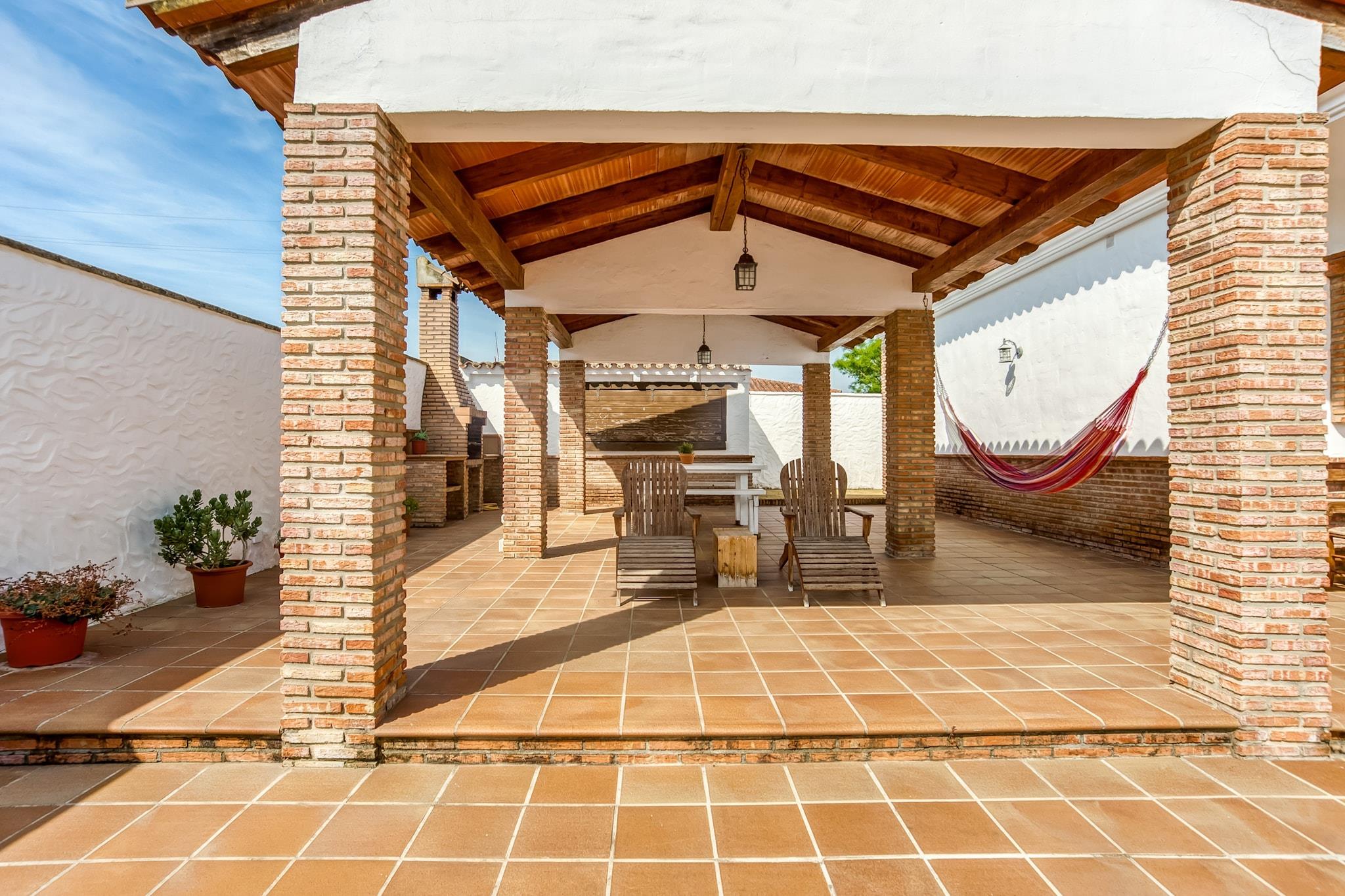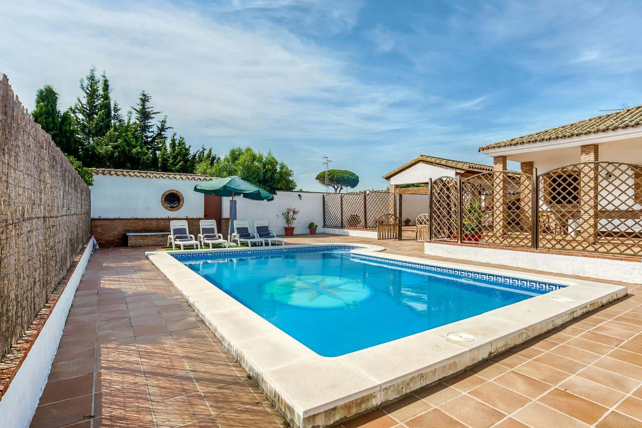 Diese einladende Villa an der andalusischen Küste ist perfekt für Familien, die Sonne, Platz und Ruhe suchen. Mit einem privaten, umzäunten Pool - ganzjährig beheizt - und einem Spielplatz für die Kleinen ist sie ein erholsamer Rückzugsort in Vejer de la Frontera. Schlendern Sie durch Vejers weiß getünchte Straßen, speisen Sie auf charmanten Terrassen oder besuchen Sie den nur 5 km entfernten Strand von Barbate. Tagesausflüge nach Sevilla, Málaga oder Torre del Mar bieten kulturelle und küstennahe Abwechslung. Die überdachte Terrasse der Villa lädt zum Weintrinken und Genießen von Tapas aus der Außenküche oder vom Grill ein. Im Inneren erwarten Sie eine Klimaanlage, ein eingezäunter Garten und optional die Anmietung von Kinderbett und Hochstuhl. Eine Garage bietet sichere Parkplätze. Der Flughafen Sevilla ist 160 km entfernt. Check-in ist zwischen 16 und 20 Uhr und Check-out zwischen 9 und 10 Uhr - der perfekte Ort für einen entspannten, gut organisierten Aufenthalt.