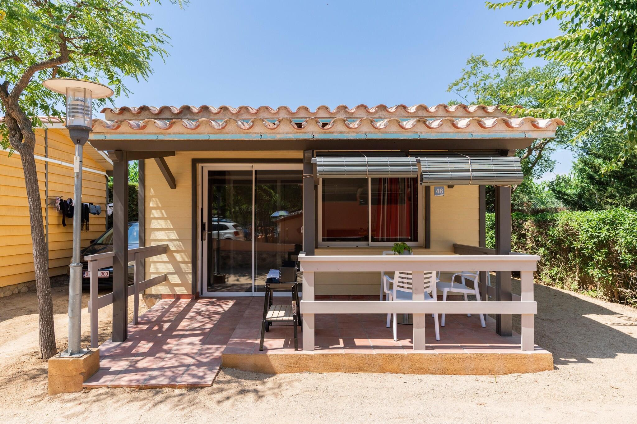 Welcome to your ideal family getaway! This cozy 27 m² bungalow is designed to accommodate up to 6 guests, making it perfect for families or small groups. It features two comfortable bedrooms and a convenient sofa bed in the dining area, ensuring everyone has a cozy spot to rest. Enjoy modern comforts with air conditioning and heating, along with a lovely terrace for relaxing in the fresh air. A designated parking space is also included for your convenience. Located just steps from a magnificent beach, this small family camping site offers a variety of recreational activities for all ages. Spend your days soaking up the sun, swimming in the Mediterranean, or participating in beach sports. Malgrat de Mar is rich in attractions that cater to every interest. Stroll along the picturesque promenade lined with shops, cafes, and restaurants, or explore the local markets for unique finds. Don’t miss a visit to the beautiful Parc del Castell, where you can enjoy scenic views and lush greenery. For a bit of adventure, take a day trip to nearby attractions like the lively town of Lloret de Mar or the cultural sites in Tossa de Mar. Check-in is from 4 PM, and check-out is before 10 AM, allowing you to make the most of your stay.
