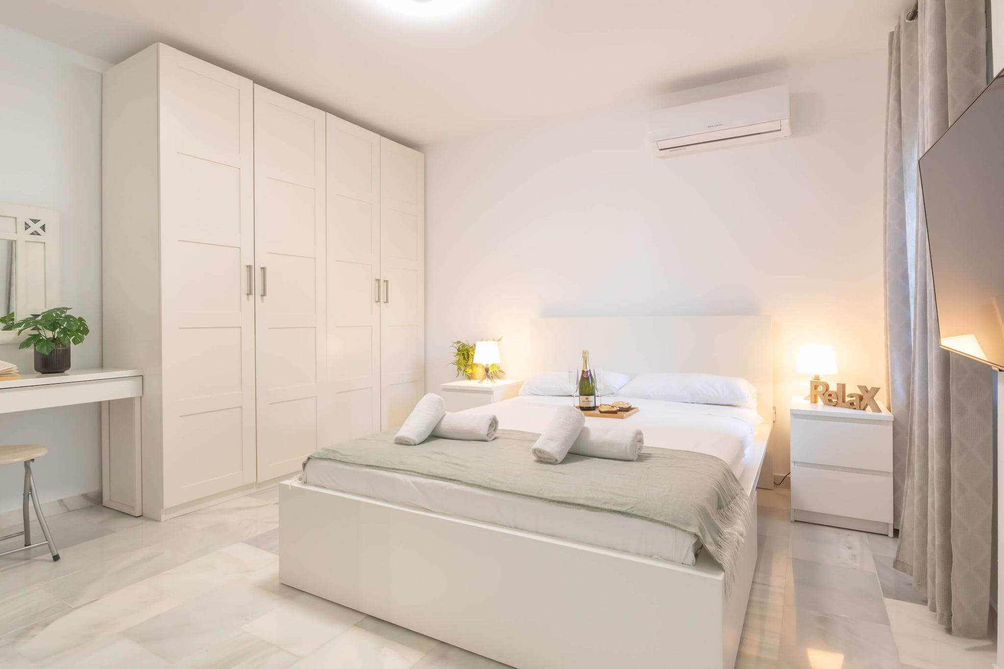 Bright apartment located in one of the best areas of Benalmádena. The accommodation has a bedroom with a double bed and a private bathroom, a bedroom with two single beds, 1 bathroom with a shower, a kitchen with a dining area open to a large bright living room, and a large terrace with views of the garden. Benalmádena is a city known on the Costa del Sol for its leisure, restaurants, gastronomy, and its incredible beaches. But the highlight is the variety of activities you can do on your vacation, from water activities on the beach, boat rental in Puerto Marina, enjoying with the little ones in its famous water parks, visiting Selwo Marina and discovering endless animals. , even a cable car ride to relax and learn more about the area. If you want to know more about the Costa del Sol, cities like Malaga, Fuengirola, Marbella, or Mijas are just 20/30km away. The accommodation has Internet, air conditioning, and a parking space within the urbanization (there is no assigned space). Also enjoy its wonderful pool in front of the door. What are you waiting for to book your break? We will wait for you!