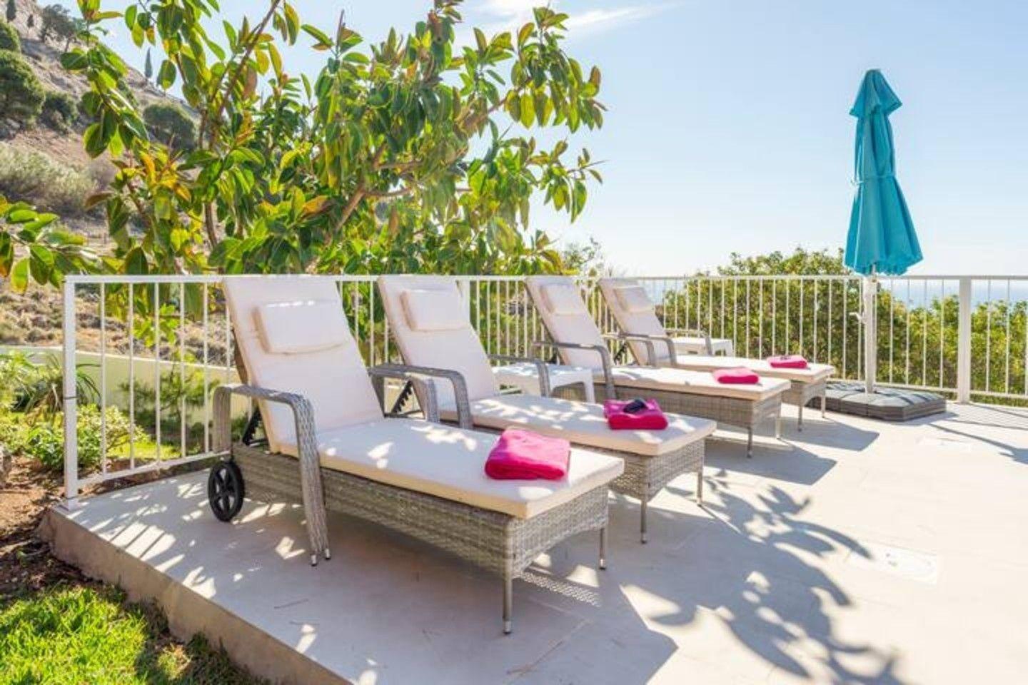 The exterior of Villa Romeo promises endless leisure and relaxation opportunities. The jewel in the crown is undoubtedly the private pool, inviting guests to cool off on hot days or simply lounge by the water's edge. The villa boasts a beautifully maintained garden, complete with a barbecue area for al fresco dining, all enclosed by a dog-proof fence for peace of mind. The terrace and balcony spaces are meticulously designed, furnished with outdoor seating to enjoy the warm Andalusian weather or dine under the stars.