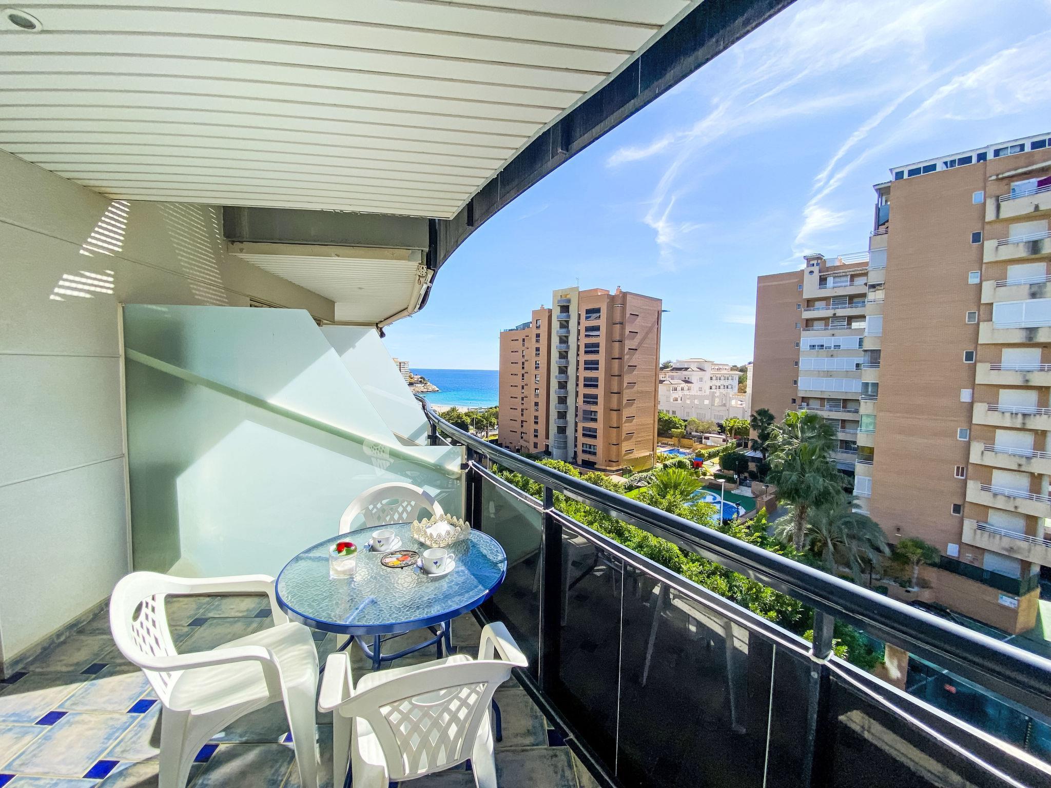 "Sidney", 2-room apartment 60 m2 on 5th floor, east facing position. Object suitable for 3 adults. Spacious and bright, tasteful furnishings: living/dining room 15 m2 with 1 sofabed, digital TV, air conditioning and forced-air heating. Exit to the terrace. 1 room 9 m2 with 2 beds (90 cm, length 190 cm), fan. Exit to the terrace. Open kitchen (oven, 4 ceramic glass hob hotplates, toaster, kettle, microwave, freezer, electric coffee machine) with bar. Bath/bidet/WC. Air-conditioning, boiler (50 litres). Terrace 10 m2. Terrace furniture. Partial view of the sea and the resort. Facilities: washing machine, iron, children's high chair, baby cot for up to 2 year olds, hair dryer. Internet (WiFi, free). Parking space n 10 (roofed). EGVT-593-A. VT-432119-A // Reg. Nr.: ESFCTU00000301600059553500000000000000000VT-432119-A9