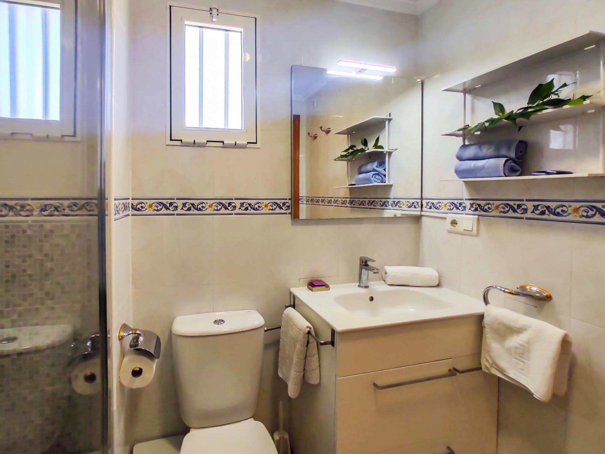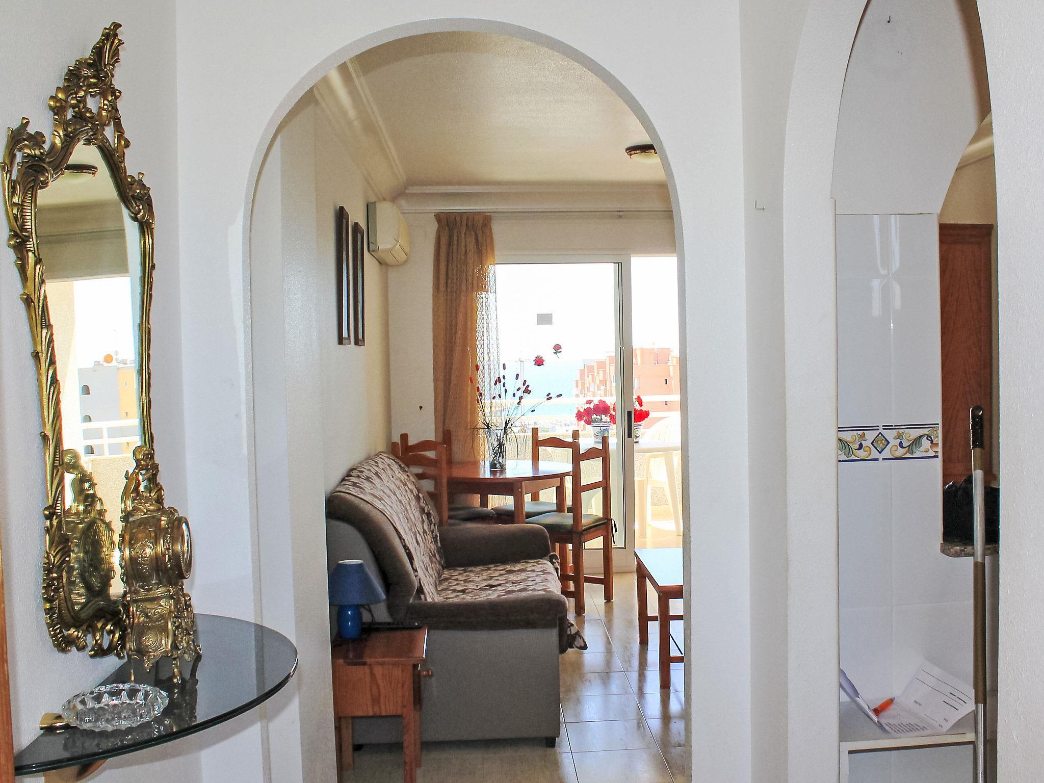 "Agua Viva", 3-room apartment 65 m2 on 4th floor. Bright, practical furnishings: living/dining room with digital TV, air conditioning and forced-air heating. Exit to the terrace. 1 room with 1 french bed. 1 room with 2 beds. Open kitchen (toaster, kettle, microwave, freezer, electric coffee machine). Bath/bidet/WC. Air-conditioning, boiler (50 litres). Terrace 8 m2. Terrace furniture. Partial view of the sea and the resort. Facilities: washing machine, iron, hair dryer. Parking space n 51 (roofed). EGVT-593-A. VT-424549-A // Reg. Nr.: ESFCTU00000301600050242700000000000000000VT-424549-A3