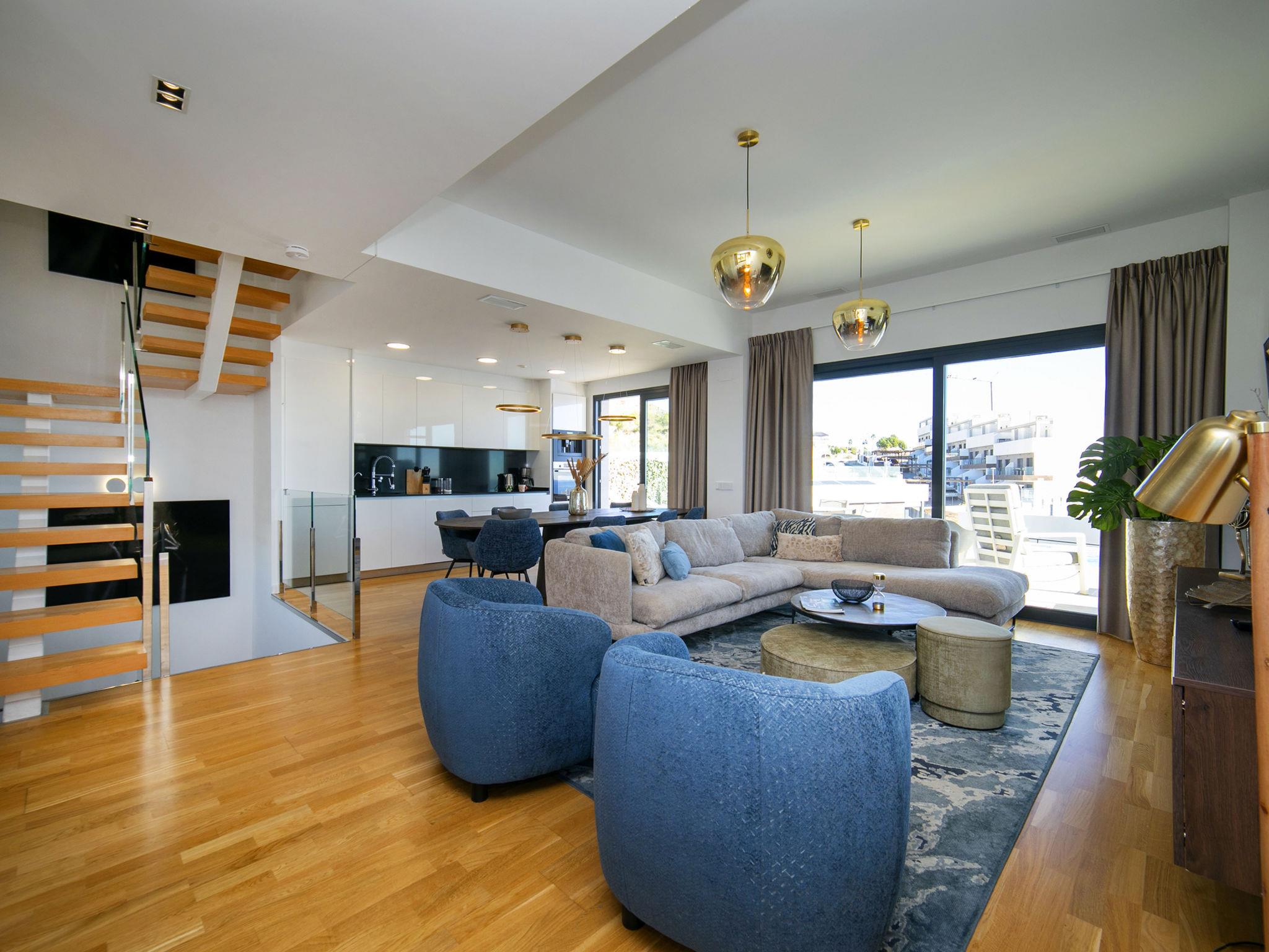 "Villa Perla", 6-room villa on 3 levels. Object suitable for 8 adults. Spacious and bright, comfortable and modern furnishings: living/dining room with digital TV, air conditioning and forced-air heating. Exit to the terrace, to the swimming pool. 1 room with 1 french bed, shower/WC, air conditioning and forced-air heating. Exit to the terrace, to the swimming pool. Open kitchen (oven, dishwasher, 4 induction hot plates, toaster, kettle, microwave, freezer, electric coffee machine). Sep. WC. On the lower ground floor: living room with digital TV, air conditioning and forced-air heating. Exit to the terrace. 1 room with 1 bed. Exit to the terrace. Shower/WC. Upper floor: 1 room with 2 beds, shower/WC, digital TV, air conditioning and forced-air heating. Exit to the balcony. 1 room with 2 beds, air conditioning and forced-air heating. Exit to the balcony. 1 room with 1 double bed, shower/WC, air conditioning and forced-air heating. Exit to the balcony. Shower/WC. Large patio. Terrace furniture. View of the swimming pool and the resort. Facilities: washing machine, dryer, iron, hair dryer. Internet (WiFi, free). Parking (1 car). Please note: non-smoking house. There are 15 stairs to enter the house. EGVT-593-A. VT-498249-A // Reg. Nr.: ESFCTU00000301600075219800000000000000000VT-498249-A9