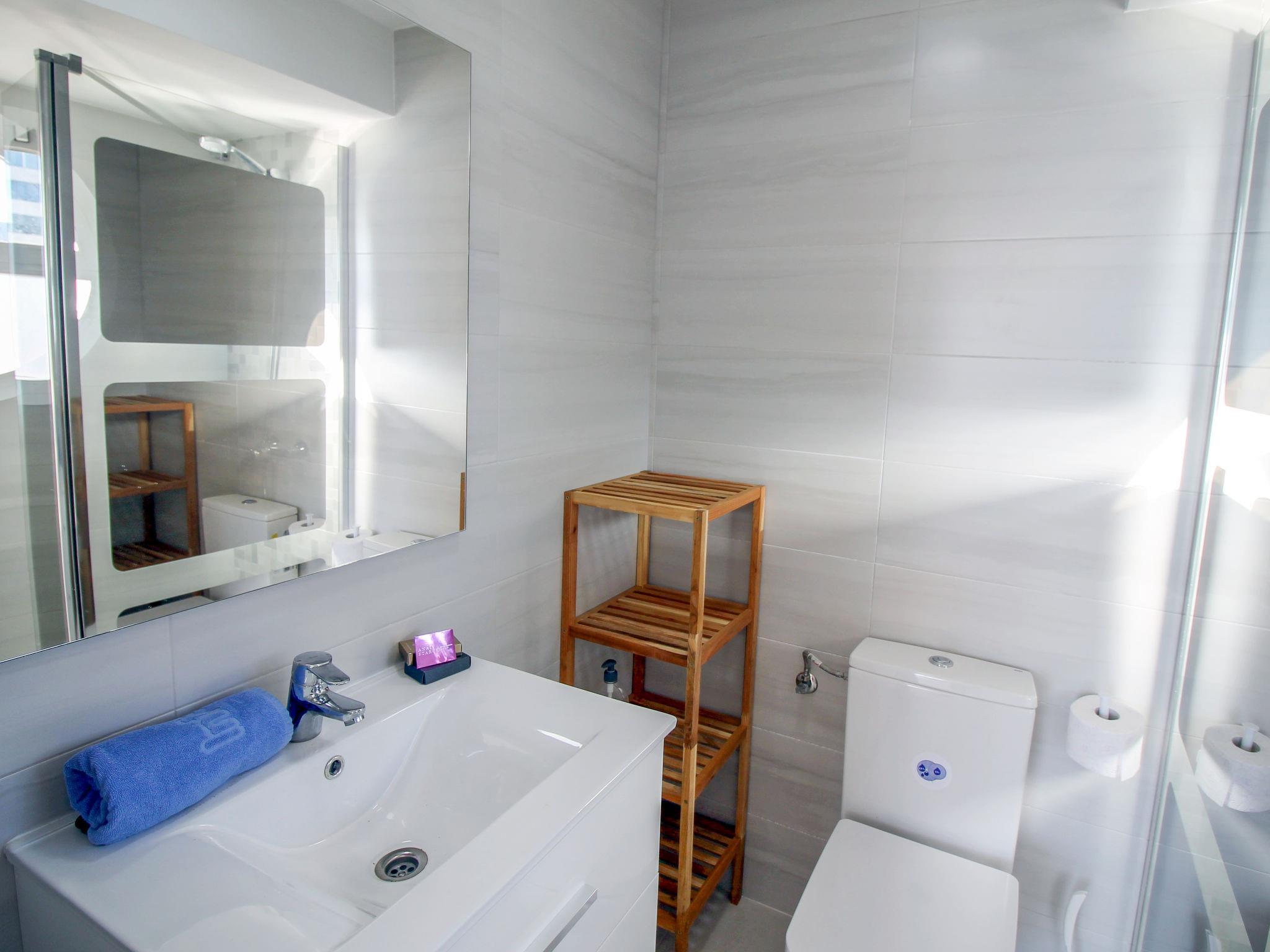 "Las Damas", 3-room apartment 40 m2, east facing position. Object suitable for 3 adults. Spacious and bright, fully, practical and comfortable furnishings: living/dining room 15 m2 with digital TV, air conditioning and forced-air heating. 1 room with 1 bed (90 cm, length 190 cm). 1 room with 1 french bed (150 cm, length 190 cm), air conditioning. Kitchenette (oven, dishwasher, 3 ceramic glass hob hotplates, toaster, kettle, microwave, freezer, electric coffee machine). Shower/WC. Panoramic view of the sea and the resort. Facilities: washing machine, iron, hair dryer. Parking. EGVT-593-A. VT-322928-BM // Reg. Nr.: ESFCTU0000030280000975060000000000000000VT-322928-BM9