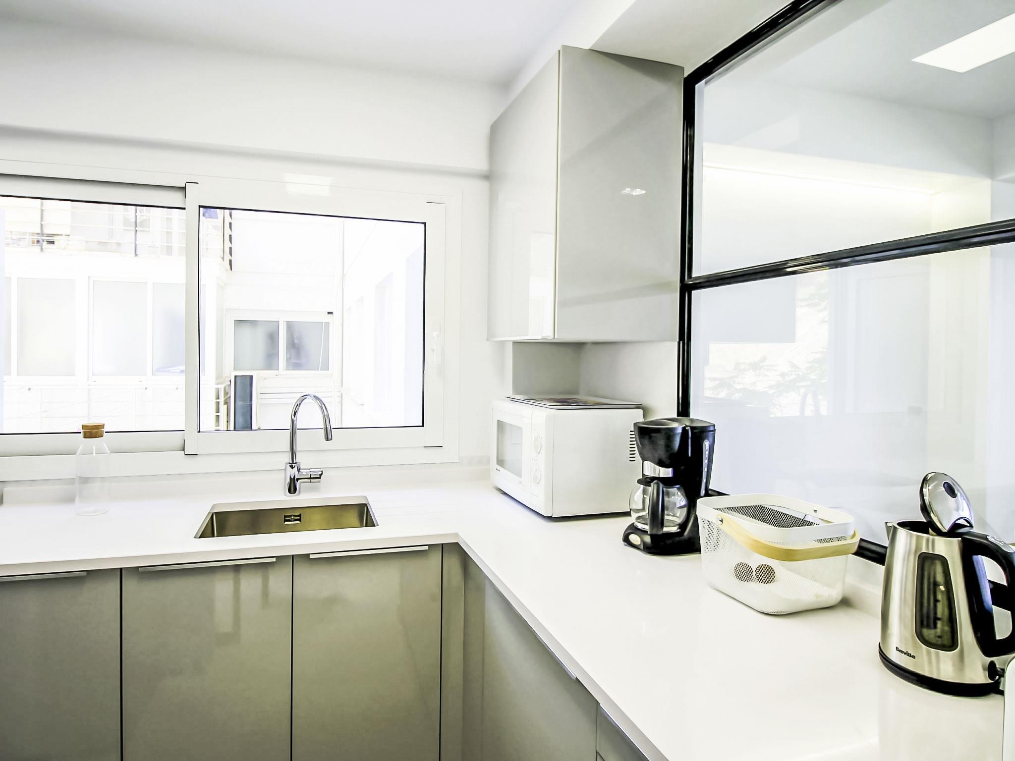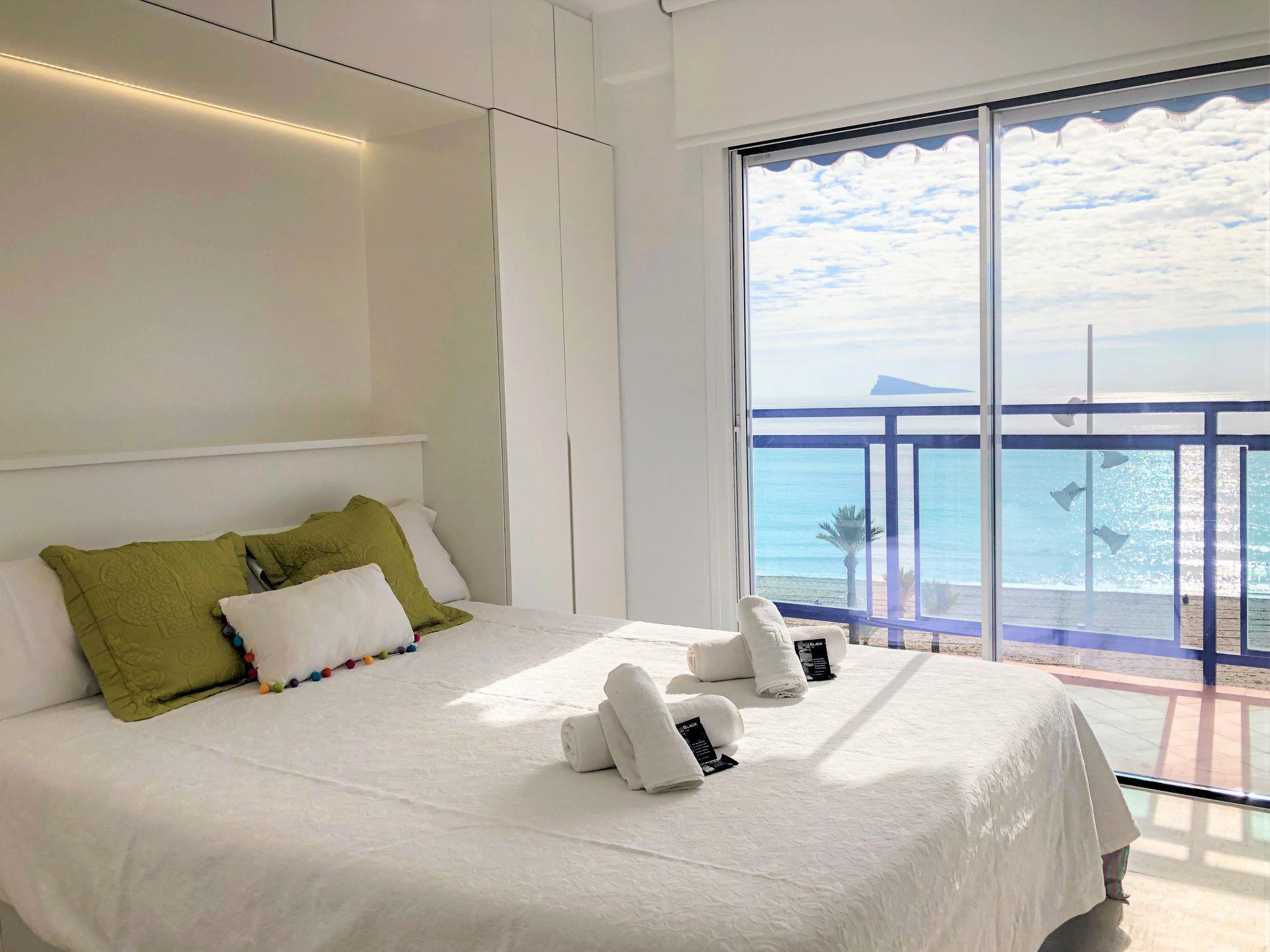 "Velazquez", 5-room apartment 100 m2 on 4th floor. Object suitable for 6 adults. Spacious, fully renovated, comfortable and tasteful furnishings: living/dining room 17 m2 with digital TV, air conditioning and forced-air heating. Exit to the terrace. 6 m2, 2 rooms, each room with 1 bed (90 cm, length 200 cm), air conditioning and forced-air heating. 1 room 9 m2 with 1 french bed (150 cm, length 200 cm), air conditioning and forced-air heating. Exit to the terrace. 1 room 6 m2 with 1 french bed (135 cm, length 190 cm), shower/WC. Kitchen (oven, dishwasher, 3 induction hot plates, toaster, kettle, microwave, freezer, electric coffee machine). Bath/WC. Air-conditioning (100 litres). Large balcony 15 m2. Terrace furniture. Very beautiful view of the sea and the resort. Facilities: washing machine, iron, hair dryer. Internet (WiFi, free). Parking space n 58 at 200 m, height 500 cm, width 250 cm. EGVT-593-A. VT-497134-A // Reg. Nr.: ESFCTU0000030430000972710000000000000000VT-322232-BM5