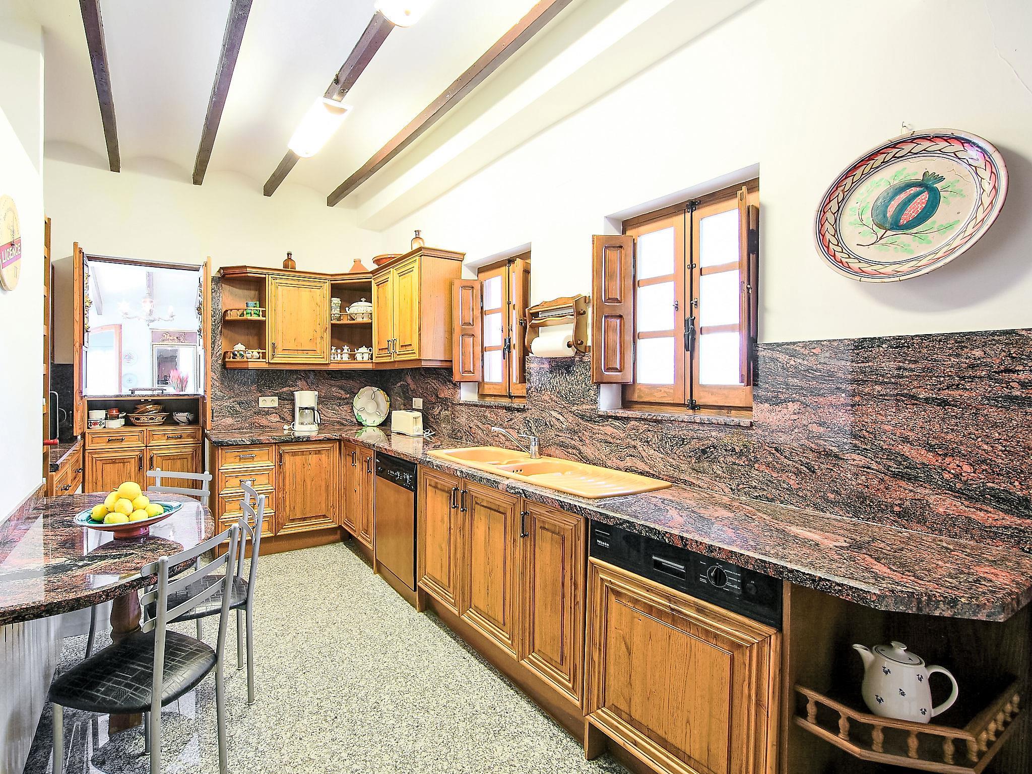 Benimarco: Large, cosy, historical farmhouse "El Baile Del Sol", 2 storeys, surrounded by trees. In a quiet, sunny, elevated position, 5.9 km from the sea, in the countryside. Private: property 8'000 m2 (fenced), park, garden, natural garden, orchard, swimming pool (14 x 4 m, seasonal availability: 01.Jan. - 31.Dec.) with internal staircase. Patio, arbour, terrace, garden furniture, barbecue house. In the house: central heating system, heating available only from 01.Nov. - 30.Apr.. Shop 2.9 km, supermarket 2.9 km, shopping centre 2.9 km, restaurant 1.5 km, bakery 2.9 km, bus stop 1.4 km, sandy beach "Cala Fustera" 2.8 km, rocky beach "Cala Avocat" 950 m, diving center 3.7 km. Sports harbour 3.7 km, surf school 3.7 km, sailing school 3.7 km. Nearby attractions: Aqualandia, Mundomar, Terra Mítica, Terra Natura, y Benidorm Palace (Benidorm). Please note: suitable for families. The owner does not accept any youth groups. Part of the house is closed and unoccupied.