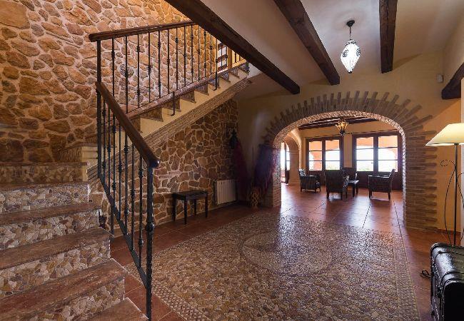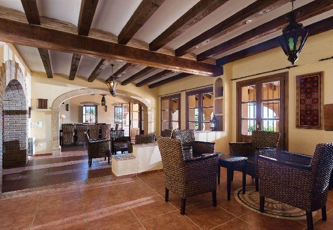 Impressive and very private rustic-style exclusive villa with private pool located in Benissa (Costa Blanca) for 12 people, with six bedrooms, six bathrooms and a toilet, distributed over two floors connected by an interior staircase.