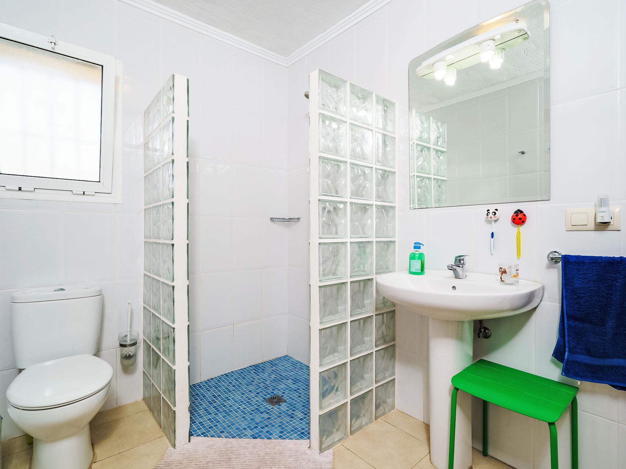 3-room house 90 m2. Living/dining room with open-hearth fireplace, satellite TV, hi-fi system, DVD, electric heater and gas heater. 1 room with 1 french bed (150 cm, length 200 cm), air conditioning. 1 room with 2 beds (90 cm, length 200 cm), air conditioning. Open kitchen (4 hot plates, dishwasher, microwave, freezer, electric coffee machine). Shower/WC. Terrace furniture, barbecue, deck chairs. Panoramic view of the sea. Facilities: washing machine, iron, baby cot for up to 3 year olds. Internet (WiFi, free). Parking (roofed). Maximum 1 pet/ dog allowed. VT-004587-A // Reg. Nr.: ESFCTU0000030380000096900000000000000CV-VUT0004587-A3