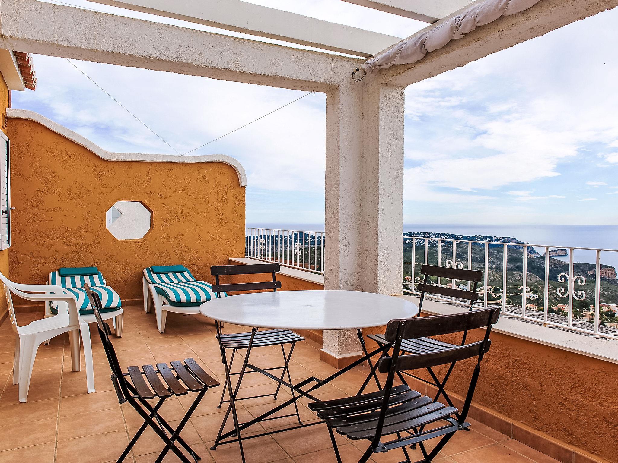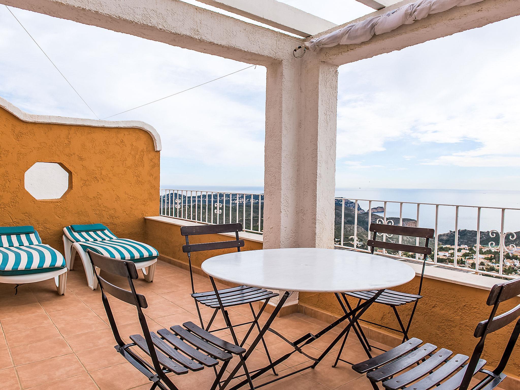 Benitachell: Holiday development "Vista Mar", built in 2008. In the district of Cumbre del Sol, in a quiet, sunny, elevated position, 3 km from the sea. For shared use: 2 swimming pools (seasonal availability: 01.Mar. - 30.Nov.) with internal staircase. Children's pool, outdoor shower, public parking on the road. Supermarket 1 km, shopping centre 2 km, restaurant 2 km, bus stop 6 km, sandy beach "Arenal" 7 km, swimming bay 3 km. Please note: car recommended, no lift. The owner does not accept any youth groups.