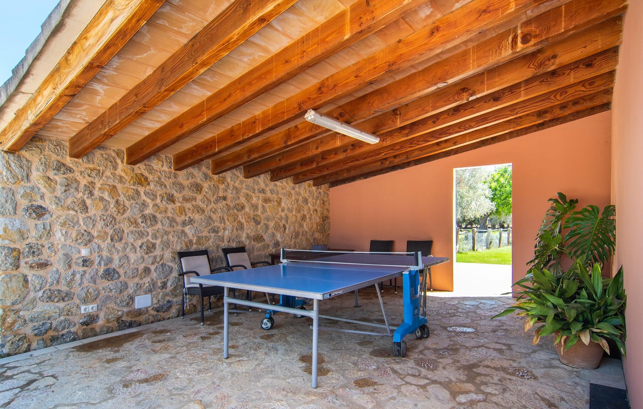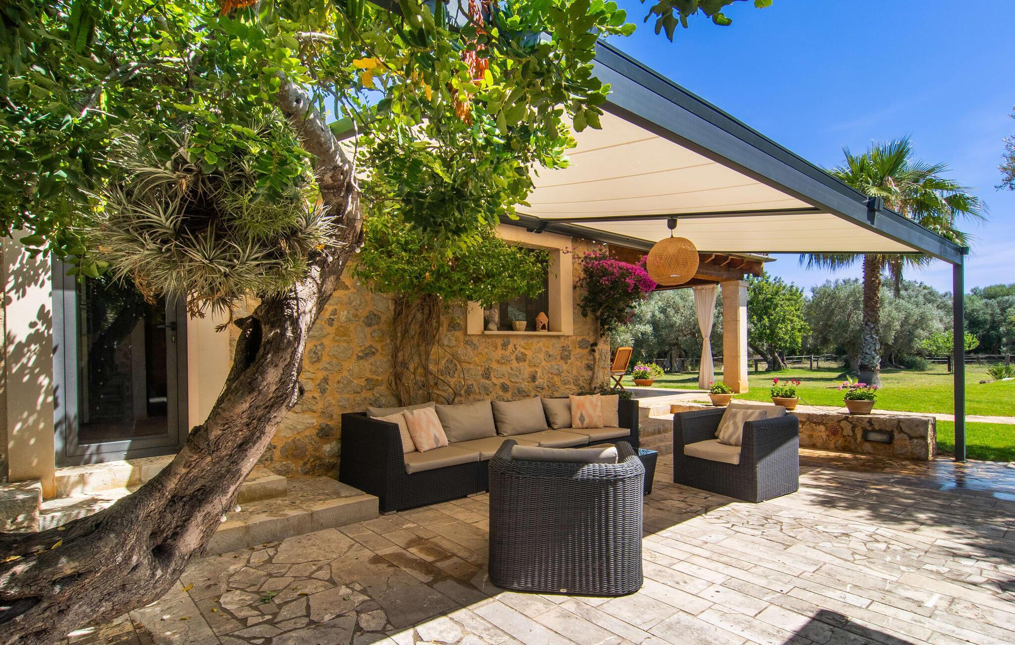 Die ebenerdige Finca „Binibona“ genießt eine echte Traumlage im Norden Mallorcas. Das Ferienhaus teilt sich ein wunderschönes Gartengrundstück mit Olivenbäumen, Palmen und viel Rasen mit einer weiteren, kleineren Casita. Im Hintergrund: die Ausläufer des Tramuntana-Gebirges. Ein weiteres Highlight sind die einladenden, gemütlichen Schattenplätze und eine gemütliche, überdachte Lounge. Der Außenbereich bietet zahlreiche weitere rustikale und stilvolle Sitzmöglichkeiten. Darüber hinaus gibt es eine Tischtennisplatte, einen Basketballkorb und einen Grill.