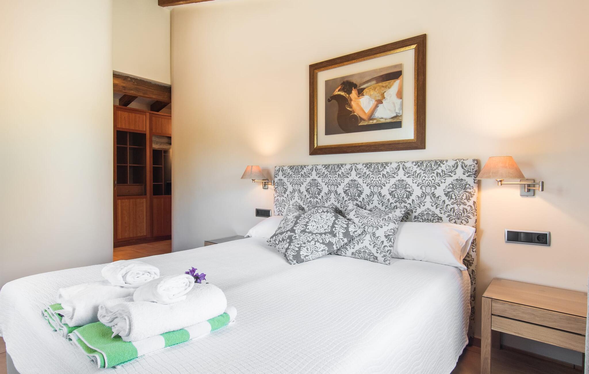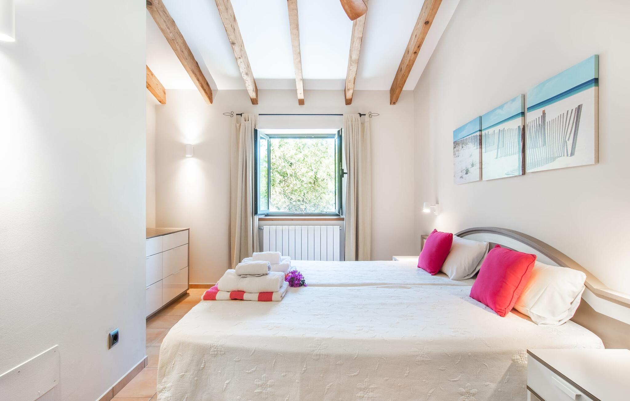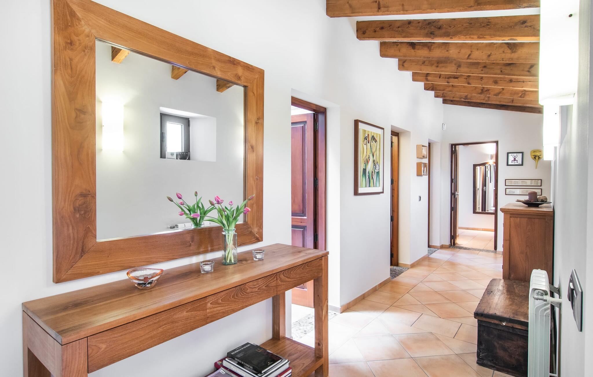 Im großzügigen Haupthaus finden bis zu sechs Personen in drei Doppelzimmern Platz. Hier finden Sie auch das Gemeinschaftswohnzimmer mit Bruchsteinmauerwerk, Holzbalkendecken und Natursteinfliesen sowie die großzügige, voll ausgestattete Wohnküche. Ein offener Kamin sorgt hier für zusätzliche Gemütlichkeit. Praktischerweise gibt es von der Küche aus einen direkten Zugang zur überdachten Terrasse, sodass Speisen und Getränke auf kürzestem Weg nach draußen transportiert werden können. Die Schlafzimmer, die dank der Klimaanlage im Flur angenehm kühl sind, sind geräumig und komfortabel eingerichtet. Direkt gegenüber dem Haupthaus bietet die kleinere Casita Unterkunft für zwei weitere Feriengäste. Es besteht aus einem großen Schlafbereich mit eigenem Bad, Kamin und Klimaanlage. Dieses Ferienhaus ist auch in der Nebensaison ein perfekter Ausgangspunkt für ausgedehnte Wanderungen oder Radtouren im nahegelegenen UNESCO-Weltkulturerbe, der wunderschönen Sierra de Tramuntana. Das Ferienhaus „Binibona“ liegt südlich der Ausläufer des Tramuntana-Gebirges im Norden Mallorcas. Gute Einkaufsmöglichkeiten gibt es im 20 Autominuten entfernten Inca. Der lange Sandstrand von Alcúdia und Playa de Muro ist 22 km entfernt.