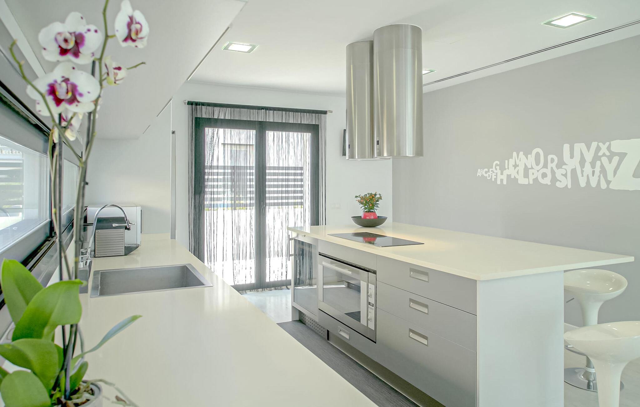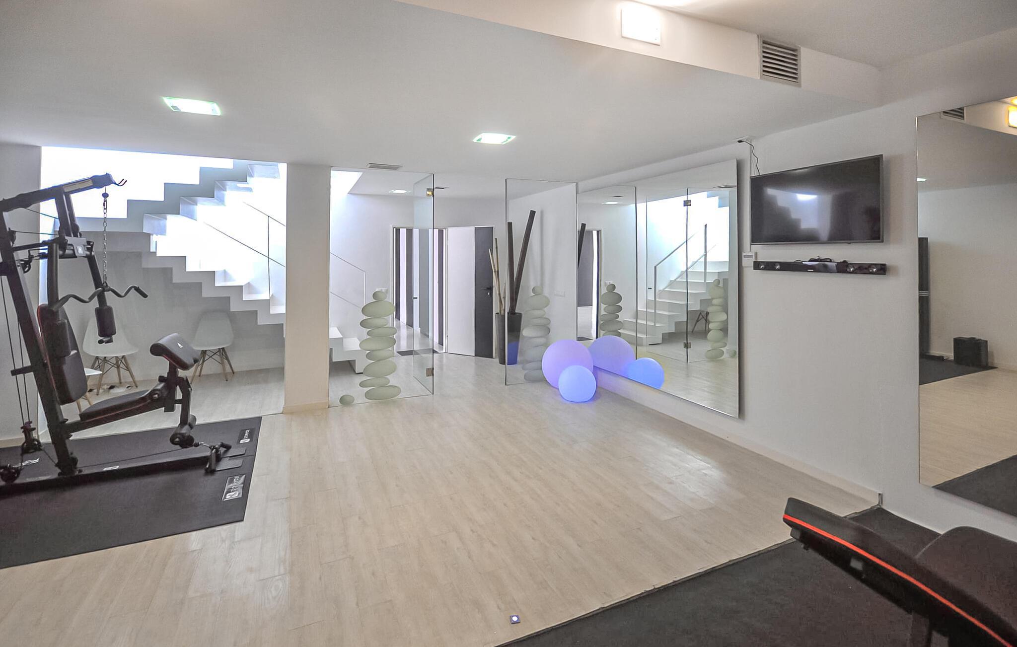 Oder gibt es das? Nur ein paar Schritte entfernt warten die schicken Innenmöbel darauf, von Ihnen entspannt zu werden. Sein minimalistisches Design und der ästhetisch dosierte Einsatz von Farben verleihen dem Innenraum des Hauses ein besonders ästhetisches Ambiente. Das Wohnzimmer mit seinen Glastüren, die auf die Terrasse führen, wirkt fast loftartig und lässt viel Raum zum Atmen. Machen Sie es sich auf dem exklusiven Sofa gemütlich, genießen Sie einen Film auf dem Flachbildfernseher, der zwar freistehend, aber dennoch unaufdringlich wirkt, und genießen Sie das Licht, das durch die gläserne Treppe auf der rechten Seite einfällt. Direkt daneben steht der Esstisch; Mit seiner originellen Tischplatte aus Holz und den üppigen Kugelleuchten aus Naturfaser ist es einem Essbereich im Freien durchaus ebenbürtig, mit dem zusätzlichen Vorteil, dass die integrierte, hochmoderne Küche mit allen modernen Notwendigkeiten nicht weit entfernt ist. Möchten Sie während Ihres Aufenthalts arbeiten? Gehen Sie dann nach oben in das speziell eingerichtete Büro, das Ihnen einen vollkommen ruhigen Ort bietet, an dem Sie Ihre Arbeit erledigen können. Die eigentlichen Ruheplätze sind natürlich die drei Doppelzimmer, alle geschmackvoll eingerichtet und eines sogar mit offenem Bad. Vier Badezimmer sorgen dafür, dass niemand warten muss, bis er an der Reihe ist – und wenn Sie Lust haben, im Fitnessstudio im Erdgeschoss zu trainieren, steht Ihnen gleich nebenan sogar ein eigenes Gäste-WC zur Verfügung.