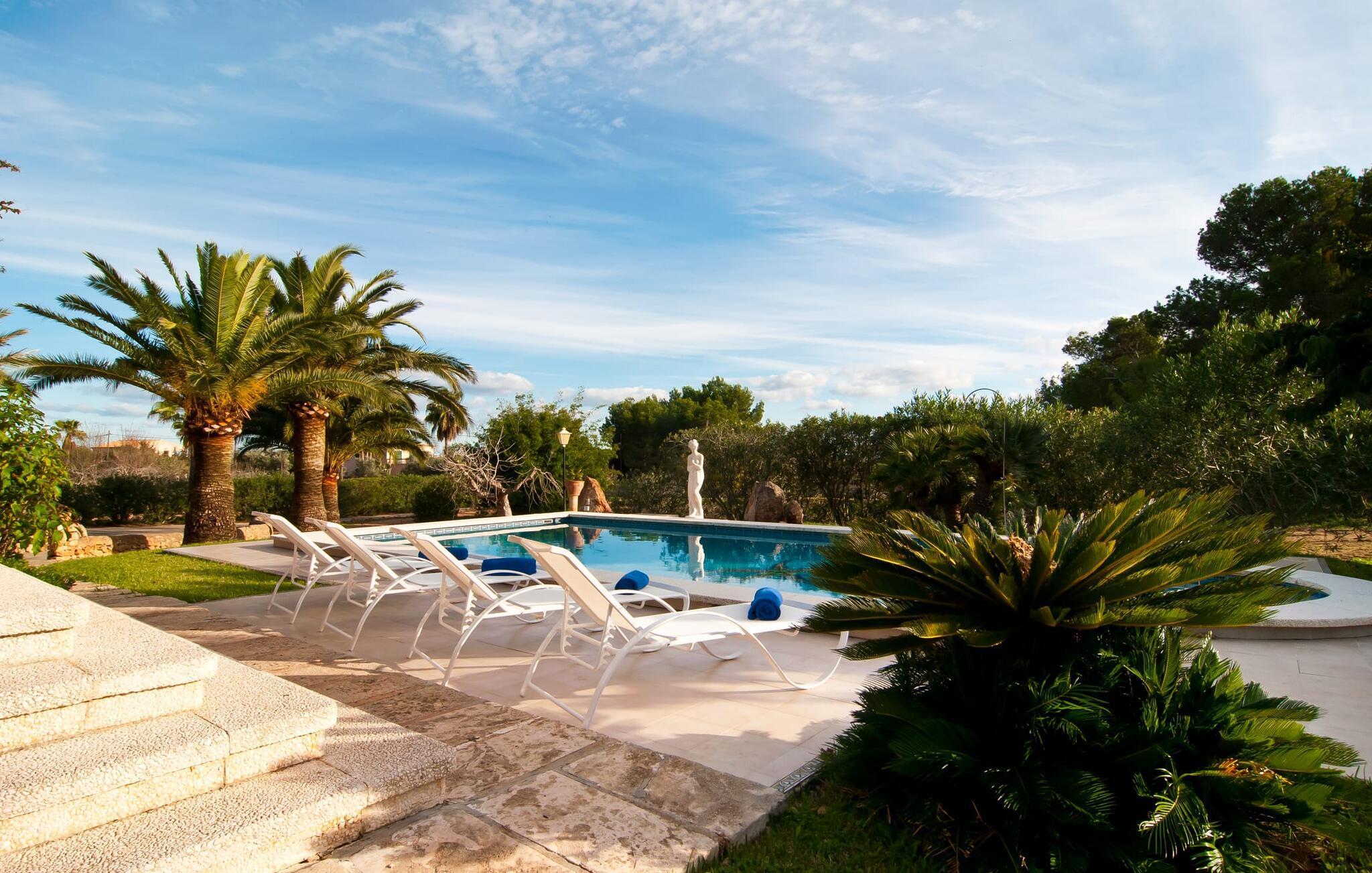 Schöne Strände wie Es Trenc liegen ganz in der Nähe dieses Ferienhauses und sind schnell zu erreichen. Durch die unmittelbare Nähe zum Meer sind vielfältige Möglichkeiten zur Ausübung von Wassersportaktivitäten gegeben. Auch für Kinder ist Es Trenc ideal, da der Zugang zum Meer flach ist und der Sand von feiner Qualität ist. Er gilt als eine der attraktivsten Naturschönheiten der Insel Mallorca, denn er ist einer der wenigen Strände der Insel, der heute noch unbebaut ist. Auch ein Ausflug in das Naturschutzgebiet Ses Salines und seine Salzbecken ist lohnenswert und sehr zu empfehlen. Die wunderschöne Villa „Bonbon“ liegt im Süden Mallorcas, nur 3 km von Colonia de St. Jordi am Meer entfernt. Es ist umgeben von einem idyllischen Grundstück von 7.300 m². Colonia de Sant Jordi bietet zwei attraktive Sandstrände, von denen der nördliche – Es Trenc – der größte Naturstrand der Insel ist. Auch das Hafenviertel mit seinen schönen Restaurants ist sehr einladend.