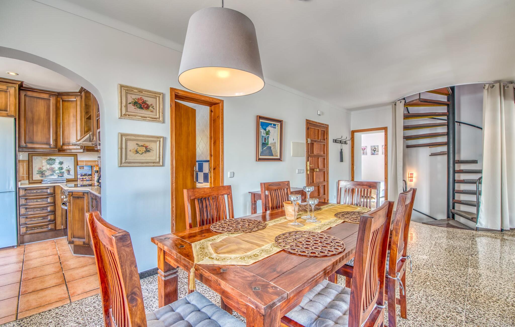 Aber auch die Atmosphäre in dieser kompakten Villa ist sehr stimmig. Herzstück ist der offene Wohn- und Essbereich mit absolut gemütlichen Sofasitzen im hellen Beach-Stil. Dies wird durch die Kombination aus hochwertigem Natursteinboden, warmem Holz und typisch mallorquinischer Rustikalität gekonnt ergänzt. Das Ergebnis ist ein bezaubernd traditionelles und dennoch modernes Ferienhaus. Die voll ausgestattete Küche ist über einen Rundbogen mit dem Essbereich verbunden. Auch hier sind Landhaus-Look und Gemütlichkeit perfekt vereint. Die Villa mit Meerblick ist ideal für bis zu sechs Personen oder zwei Familien. Auf zwei Etagen finden Sie gemütliche Schlafzimmer, wahlweise mit einem Doppelbett oder zwei kindergerechten Einzelbetten. Für Ihren Komfort finden Sie über den Bettgestellen Baldachine, die auch als Moskitonetze dienen. Zwei individuell geflieste Duschbäder runden das Ensemble ab. Die fabelhafte Villa „Buena Vista de Cala Pi“ eignet sich nicht nur für einen Urlaub auf Mallorca im Sommer, sondern auch in der Nebensaison – und das zu sehr attraktiven Mietpreisen in wunderschöner Lage.