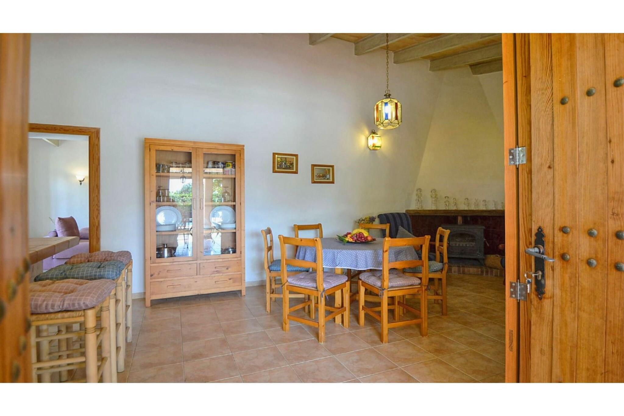 Cosy cottage on 7100 m2 of land, in a quiet area on the outskirts of Búger. The interior of the house is bright with rustic Mallorcan interior décor and has 2 bedrooms, 2 bathrooms, a kitchen and a living-dining room. The 3rd bedroom upstairs in a gallery with a slightly lower ceiling. The property is surrounded by a garden with fruit trees and offers beautiful views of the countryside and mountains. There is also has a lovely veranda and a private swimming pool with sun terrace. Located very close to the village, only 10 km from Pollensa and its exclusive Golf Club and about 14 km from the beaches on the north shore. Electricity consumption: July and August EURO 9 / day; rest of months EURO 7 / day.