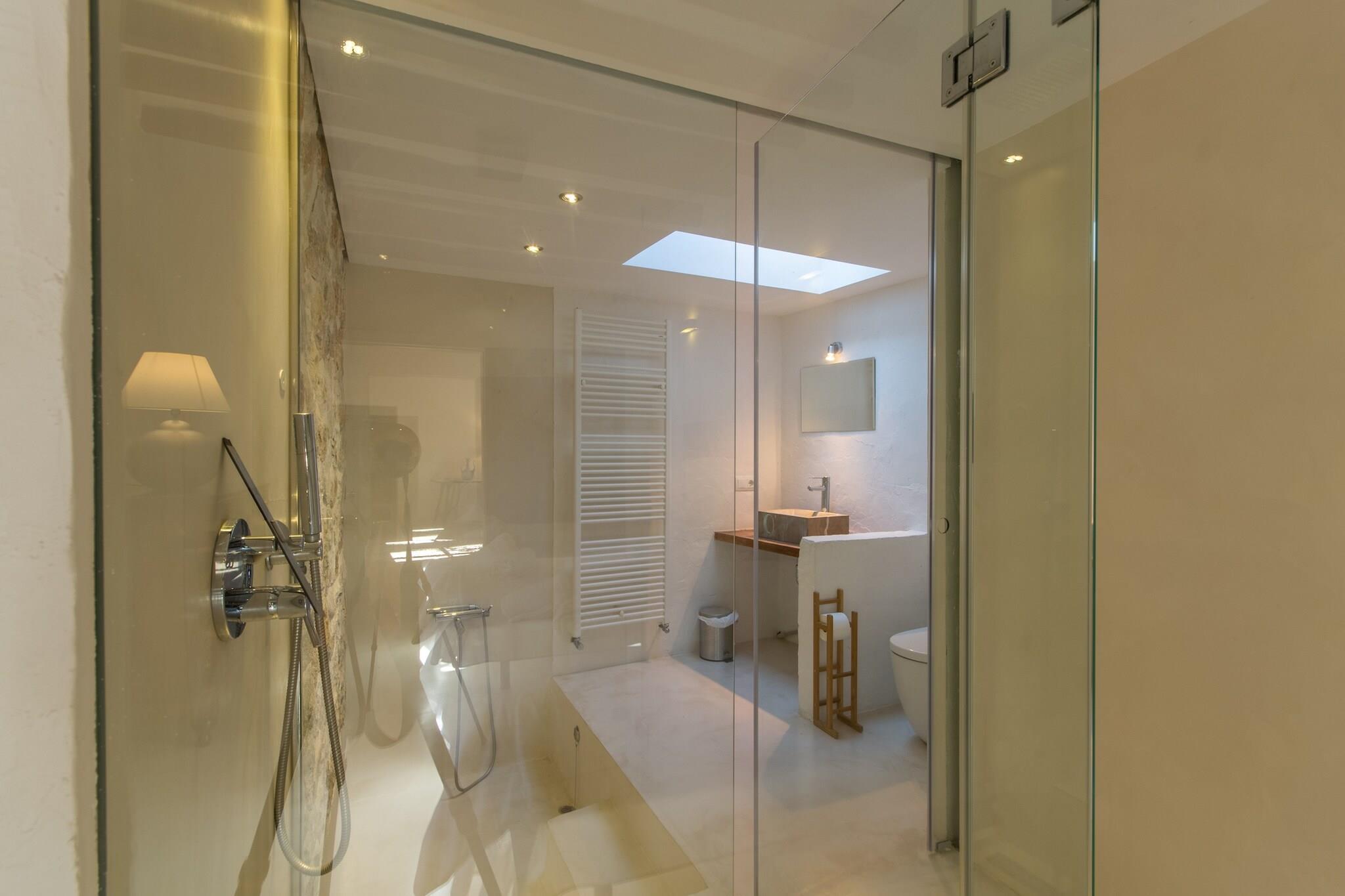 Ground floor: (Kitchen(electric kettle, toaster, coffee machine, oven, dishwasher, fridge-freezer, Juicer, electric hot plates, dishes and cutlery, Cooking basics), Living/diningroom(single sofa bed, TV(satellite), dining table, fireplace, DVD player), Bedroom with bathroom(double bed, bathtub with shower), bathroom(bath tub), toilet, Internet access) On the 1st floor: (Bedroom with bathroom(single bed, single bed, shower), Bedroom with bathroom(single bed, single bed, shower), Bedroom with bathroom(single bed, single bed, shower), Bedroom with bathroom(single bed, single bed, shower)) Garden Furniture , washing machine, heating, air conditioning, terrace, garden, BBQ, parking, swimming pool(private), iron