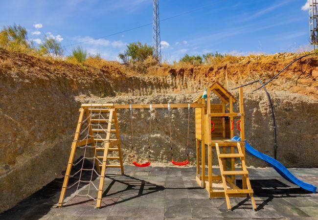 The exteriors are a great attraction: a recycled shallow pool (less than 90 cm) with safe access via a wooden ladder, ideal for children and refreshing as a family. The children's playground is of high quality, with padded ground and various attractions, visible from almost the entire outdoor area for parents' peace of mind. At night, the low light pollution allows enjoying a wonderful starry view, creating a unique atmosphere for family reunions.