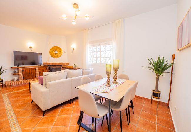 This charming rural house in Cártama is designed to comfortably accommodate up to 6 people, offering defined spaces to enjoy with family, with careful decoration and centralised air conditioning for your comfort. Its spacious swimming pool with artificial grass, sun loungers and fixed umbrellas invites relaxation and fun, including a slide for children over 10 years old that guarantees moments of entertainment. Access to the pool is done from the outside, going out through the main door to the back, maintaining the privacy and security of the accommodation.