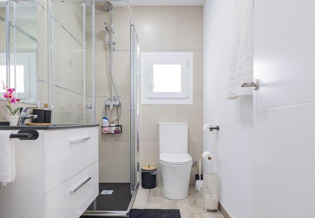 For rest, the house has two bedrooms with windows to the outside, double beds and enough space to comfortably organize your luggage. The bathroom has a shower tray and a portable air conditioning unit is provided to set the atmosphere, since the accommodation does not have fixed air conditioning.