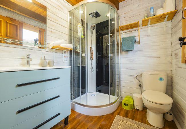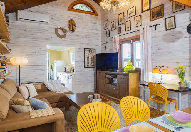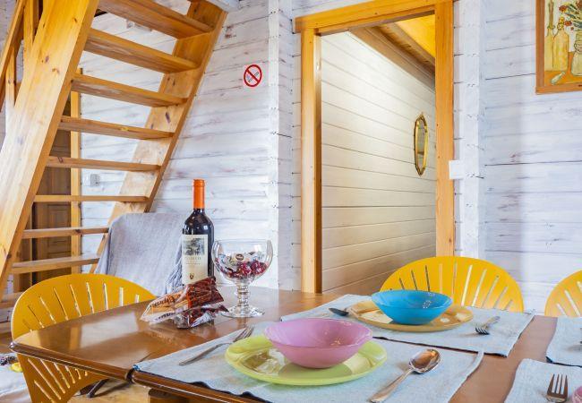In its 80 m² distributed over two floors, the house has three bedrooms for up to six people (although the official capacity is for five), with a double bed and a single bed on the attic-style upper floor, ideal for children and teenagers, and two bedrooms with double beds on the lower floor, next to a spacious living-dining room and fully equipped kitchen with modern appliances (fridge, microwave, oven, dishwasher, coffee maker, toaster and more). The fixed wooden staircase leading to the upper floor is not suitable for very young children due to its inclination.