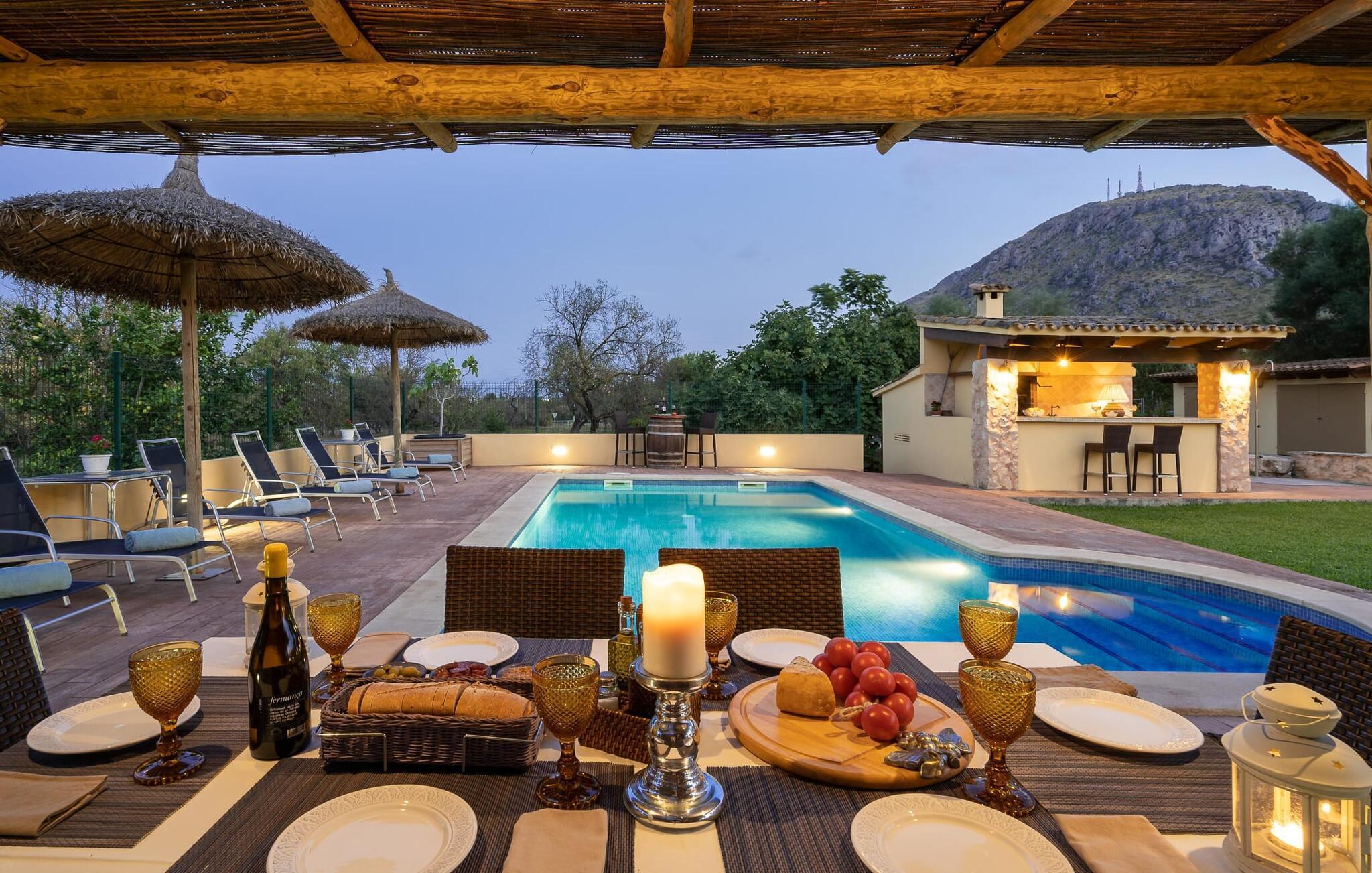 Willkommen in der ländlichen Villa „Ca Na Conceda“, einem wunderschönen mallorquinischen Ferienhaus in herrlicher Naturkulisse vor Bergkulisse. In Sichtweite von Alcúdia sind Sie in dieser fröhlichen ländlichen Villa umgeben von der Vielfalt der mallorquinischen Natur. Im weitläufigen Garten finden Sie eine reiche Vielfalt an mediterranen Pflanzen in einem subtropischen Klima, das diesen Ort, gelegen auf einer Halbinsel zwischen den Buchten von Pollença und Alcúdia, auszeichnet. Sie können im Meer oder privat im hautfreundlichen Pool schwimmen und anschließend eine Pause auf den Entspannungsliegen einlegen. Urlaubsfeeling pur bietet auch die überdachte Außenküche mit Kühlschrank und Bar. Es gibt auch weitere fantastische Sitzbereiche in der Nähe des Pools und der Bar. Von dort aus können Sie den kleinen Gästen beim Spielen auf dem Rasen mit Fußballtoren zusehen. Kinder lieben übrigens den kleinen Zoo, der aus Kaninchen, Pferden und Hühnern besteht. Gerne können Sie die Frühstückseier morgens beim Besuch der Tiere abholen. Auch abends können Sie von der integrierten Dachterrasse mit Loungemöbeln im Obergeschoss das Panorama dieser spektakulär schönen Region Mallorcas genießen, die Ihnen mit Bergen, Stadt und Meer einfach alles bietet.