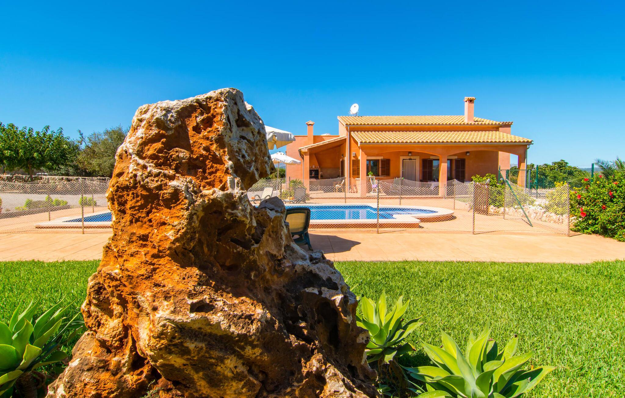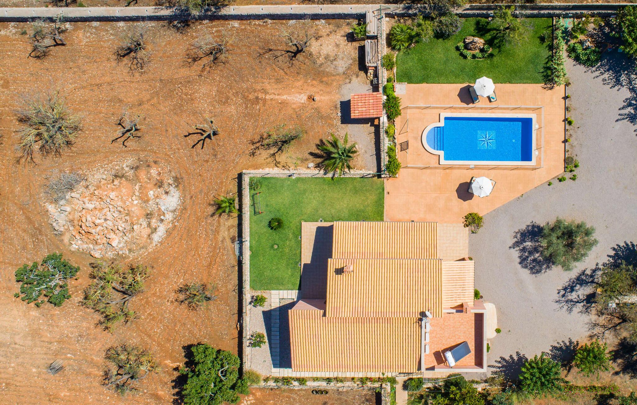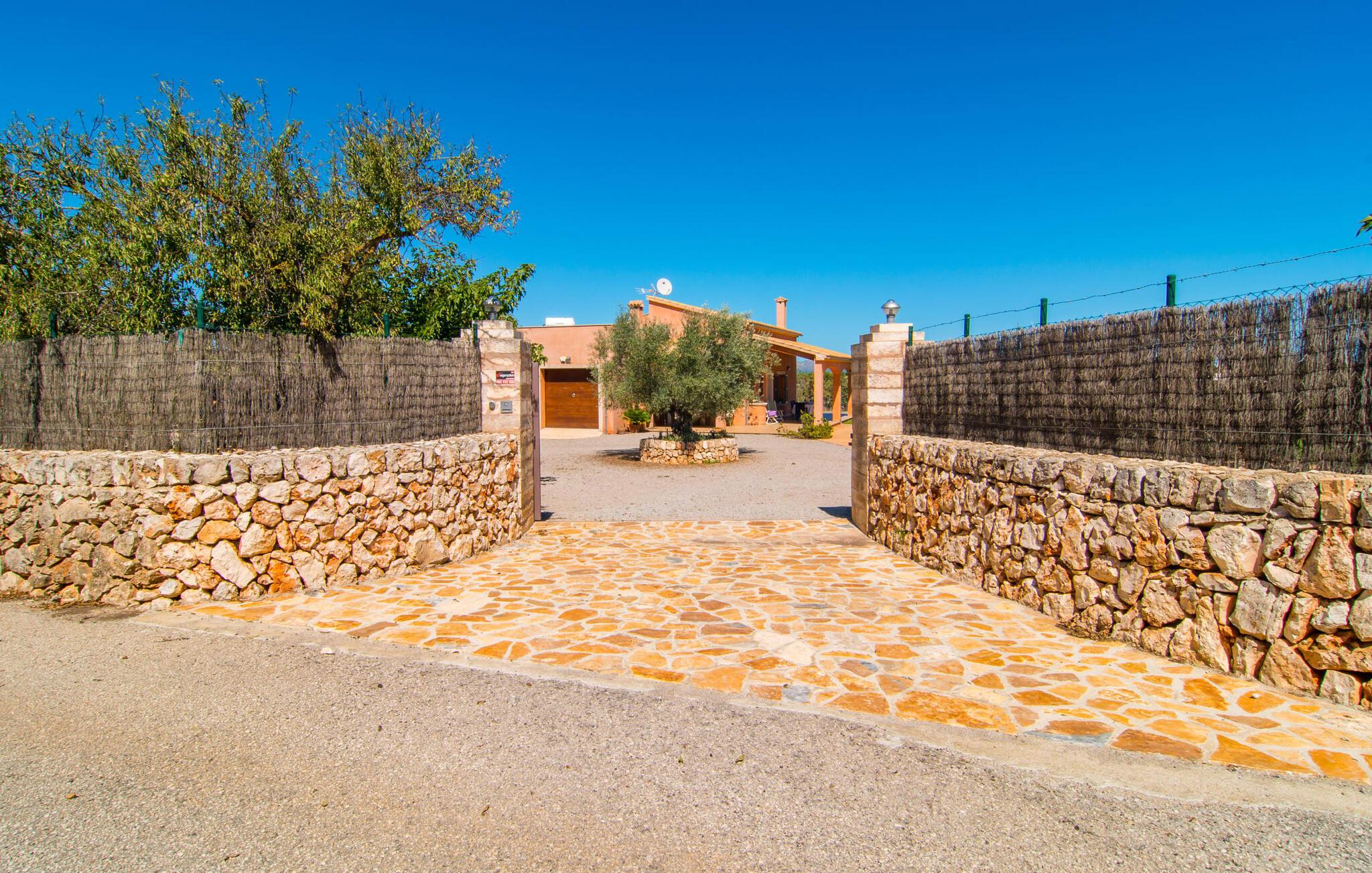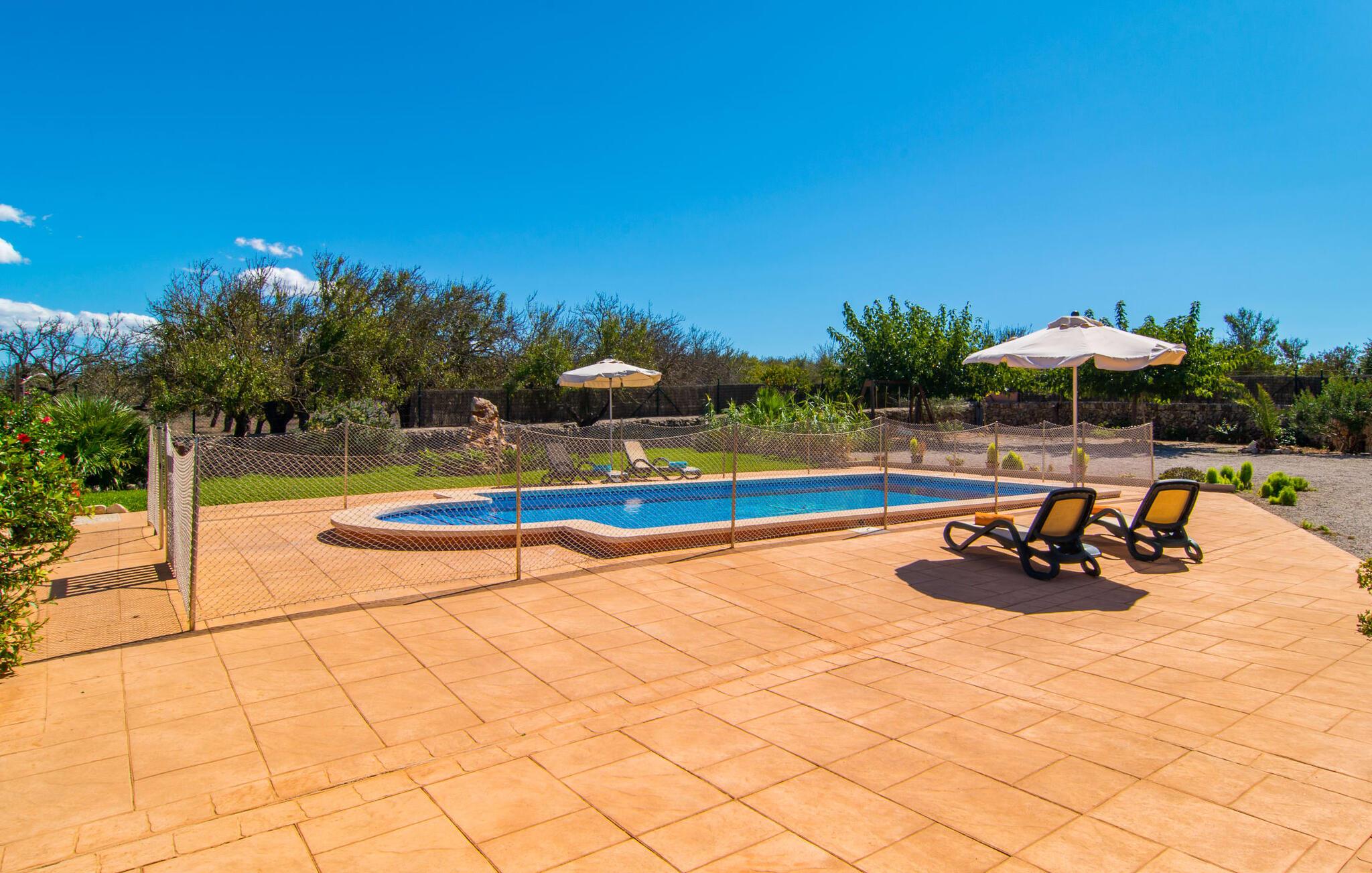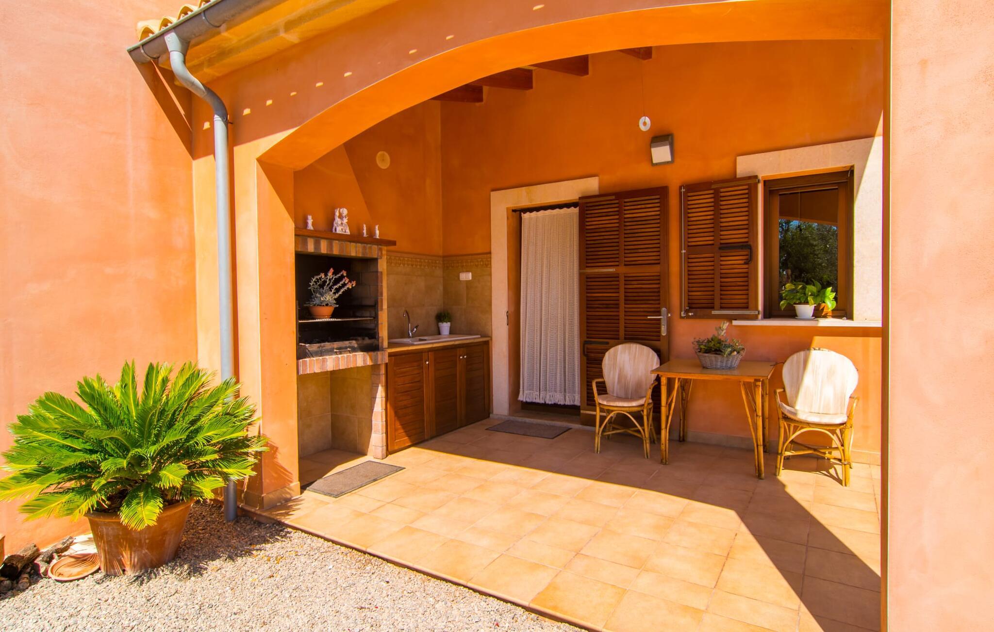 Nicht nur das Äußere lässt Sie rundum sorgenfrei zurück, auch das Innere des Hauses bietet nahezu alles, was das Herz begehrt. Die klassisch-mallorquinische Küche mit angrenzendem Wohn-/Essbereich bietet Platz für viele Dinge gleichzeitig. Während eine Person in der Küche ein leckeres Abendessen zaubert, kann eine andere dafür sorgen, dass sie kein wichtiges Spiel oder ihre Lieblingsserie im Fernsehen verpasst. Dank der ebenerdigen Bauweise der Villa sind die drei liebevoll eingerichteten Doppelzimmer nicht weit entfernt, die Ihnen jeweils ein Lächeln aufs Gesicht zaubern werden. Ruhige Nächte garantieren auch die Moskitonetze an den Fenstern, die vier tragbaren Ventilatoren und die Klimaanlage. Doch auch an kälteren Tagen erfüllt diese familienfreundliche Villa keine Wünsche und sorgt dank des Kamins für eine wunderbare Atmosphäre. Dies ist ein fantastischer Ort zum Entspannen und Erholen, perfekt für Familien mit Kindern.