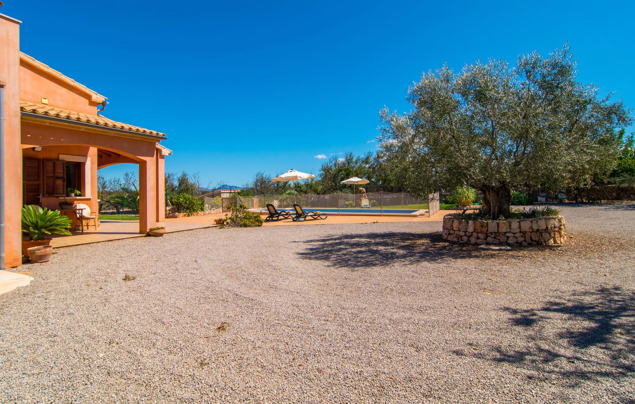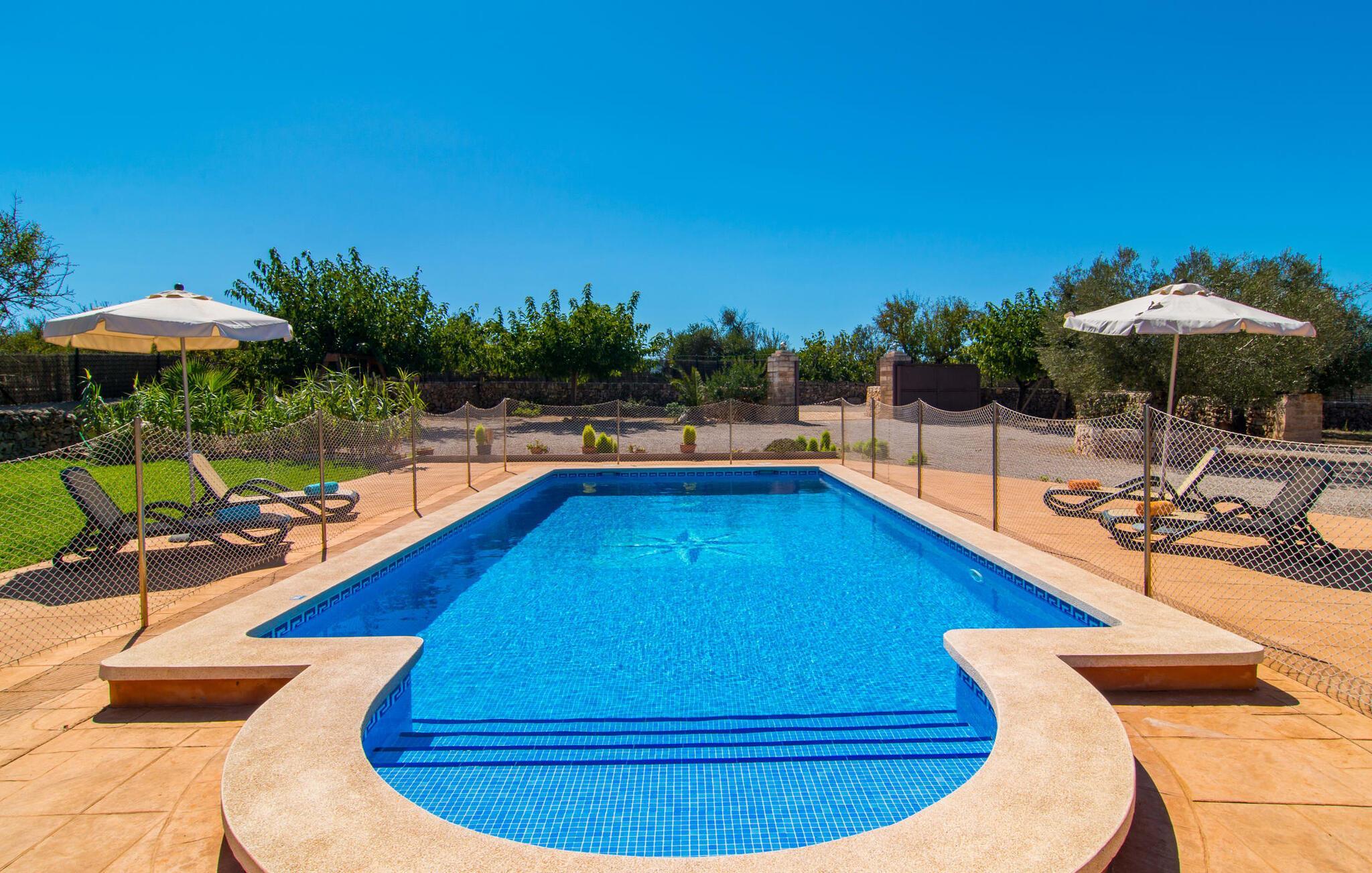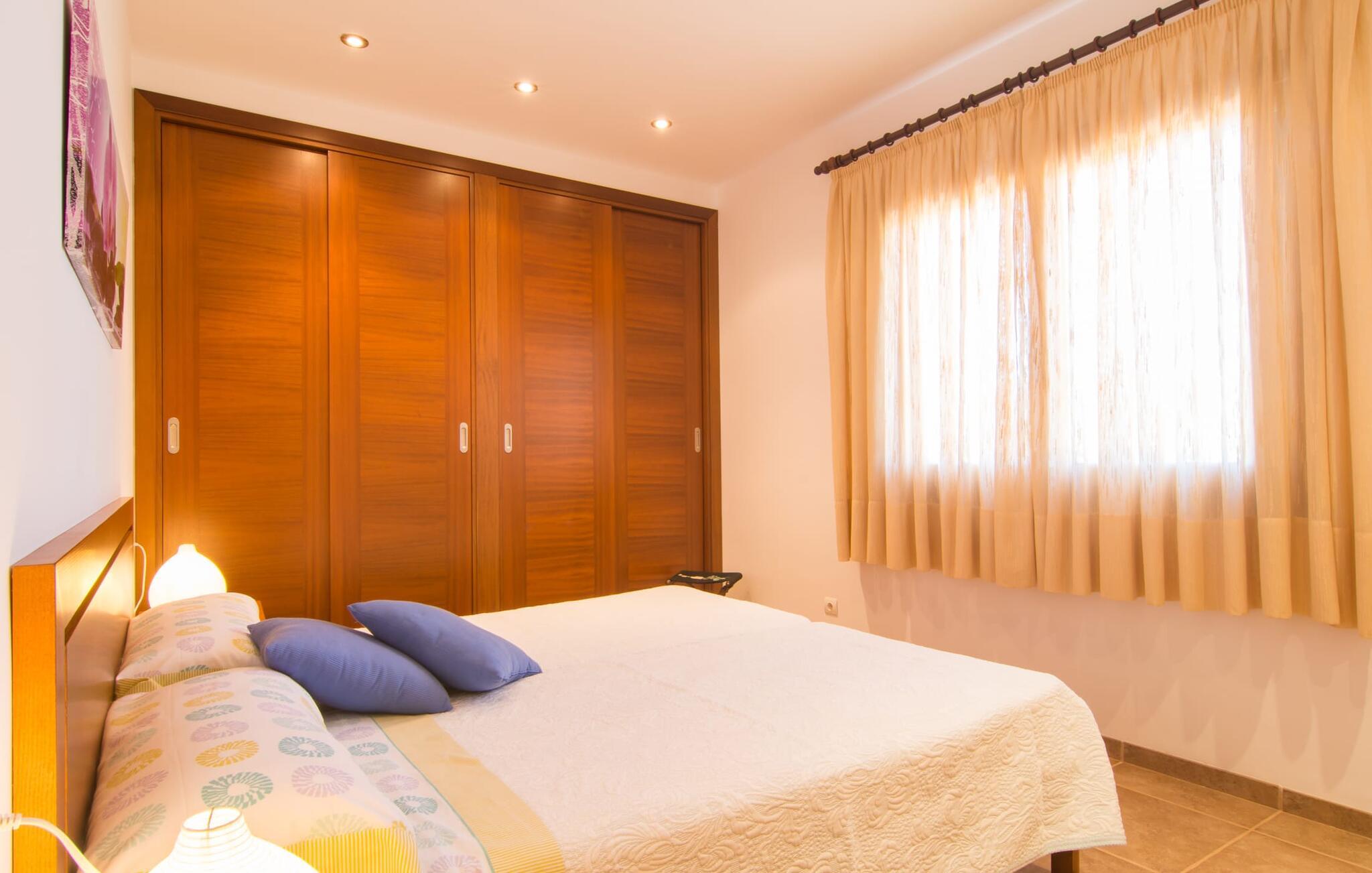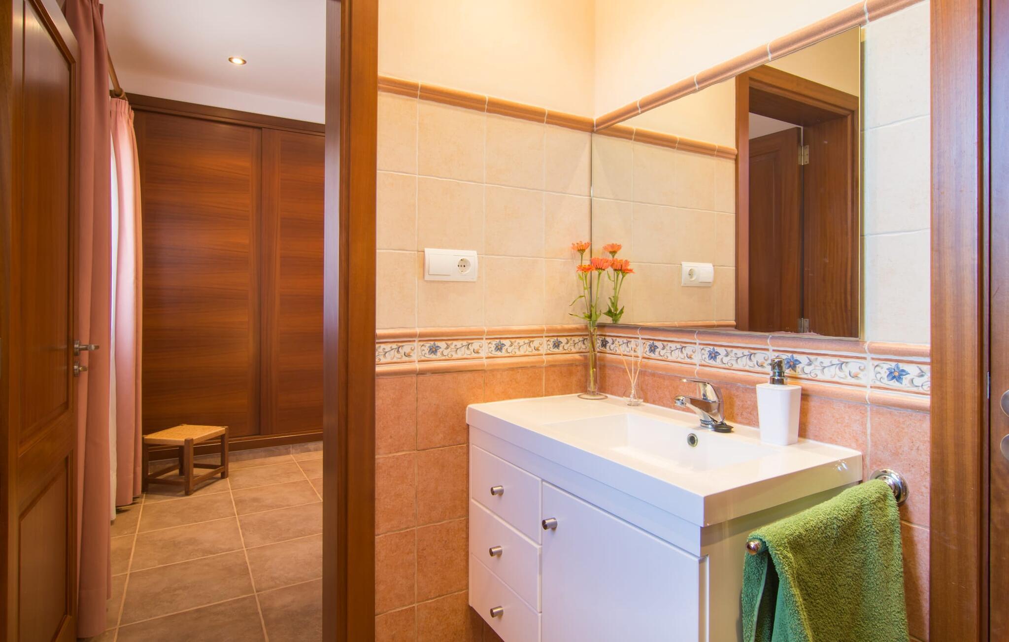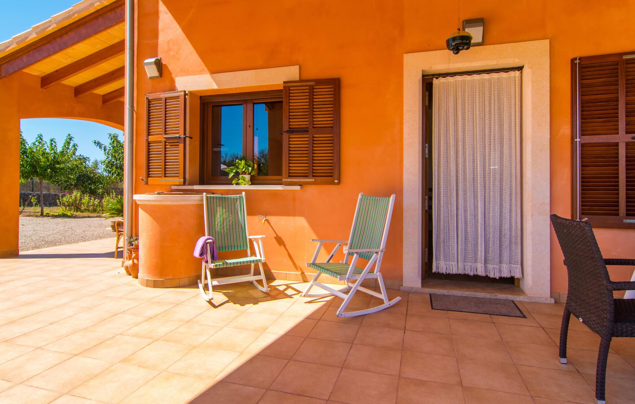 Nicht nur das Äußere lässt Sie rundum sorgenfrei zurück, auch das Innere des Hauses bietet nahezu alles, was das Herz begehrt. Die klassisch-mallorquinische Küche mit angrenzendem Wohn-/Essbereich bietet Platz für viele Dinge gleichzeitig. Während eine Person in der Küche ein leckeres Abendessen zaubert, kann eine andere dafür sorgen, dass sie kein wichtiges Spiel oder ihre Lieblingsserie im Fernsehen verpasst. Dank der ebenerdigen Bauweise der Villa sind die drei liebevoll eingerichteten Doppelzimmer nicht weit entfernt, die Ihnen jeweils ein Lächeln aufs Gesicht zaubern werden. Ruhige Nächte garantieren auch die Moskitonetze an den Fenstern, die vier tragbaren Ventilatoren und die Klimaanlage. Doch auch an kälteren Tagen erfüllt diese familienfreundliche Villa keine Wünsche und sorgt dank des Kamins für eine wunderbare Atmosphäre. Dies ist ein fantastischer Ort zum Entspannen und Erholen, perfekt für Familien mit Kindern.