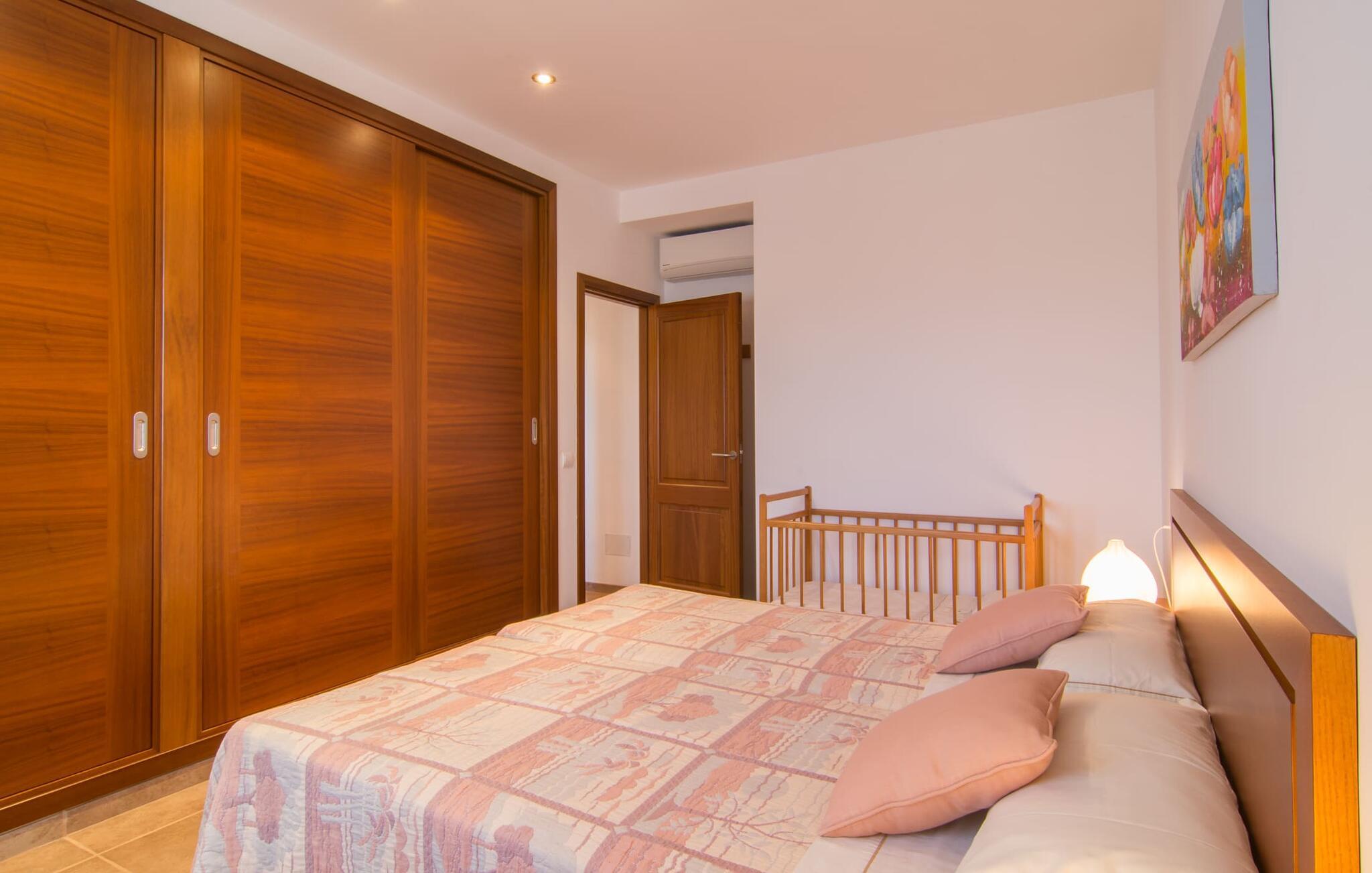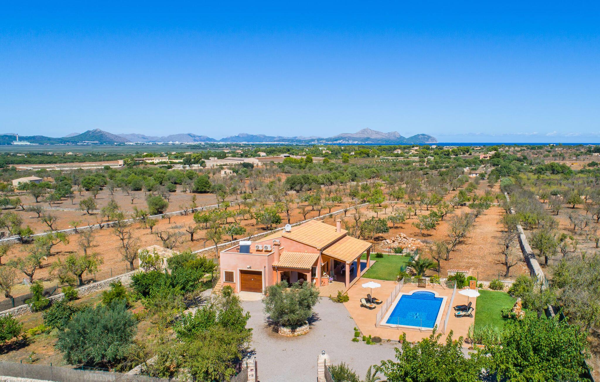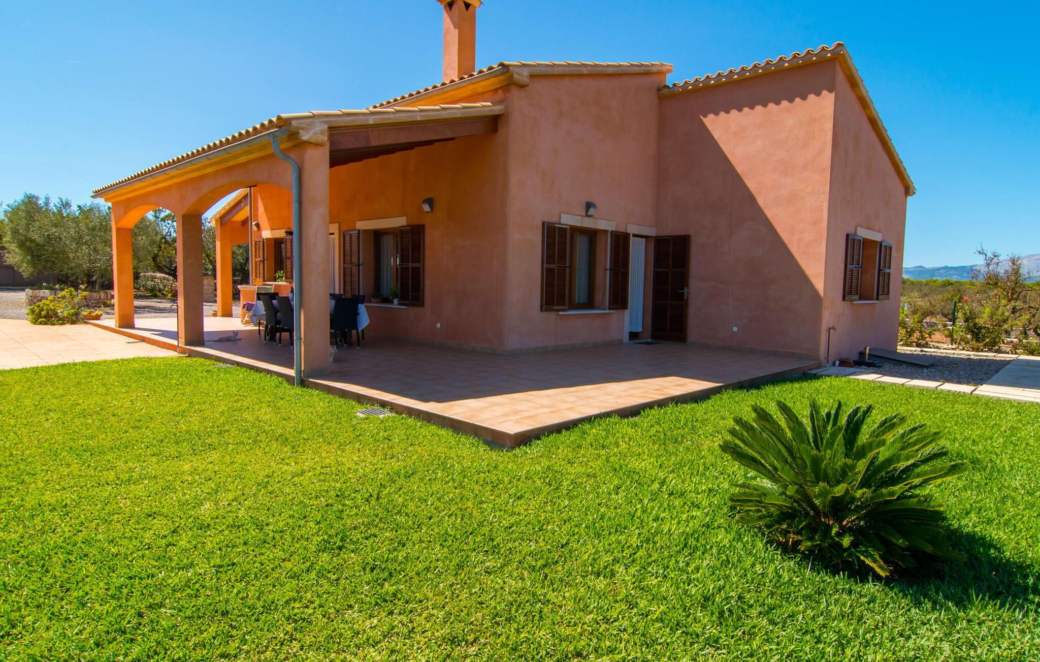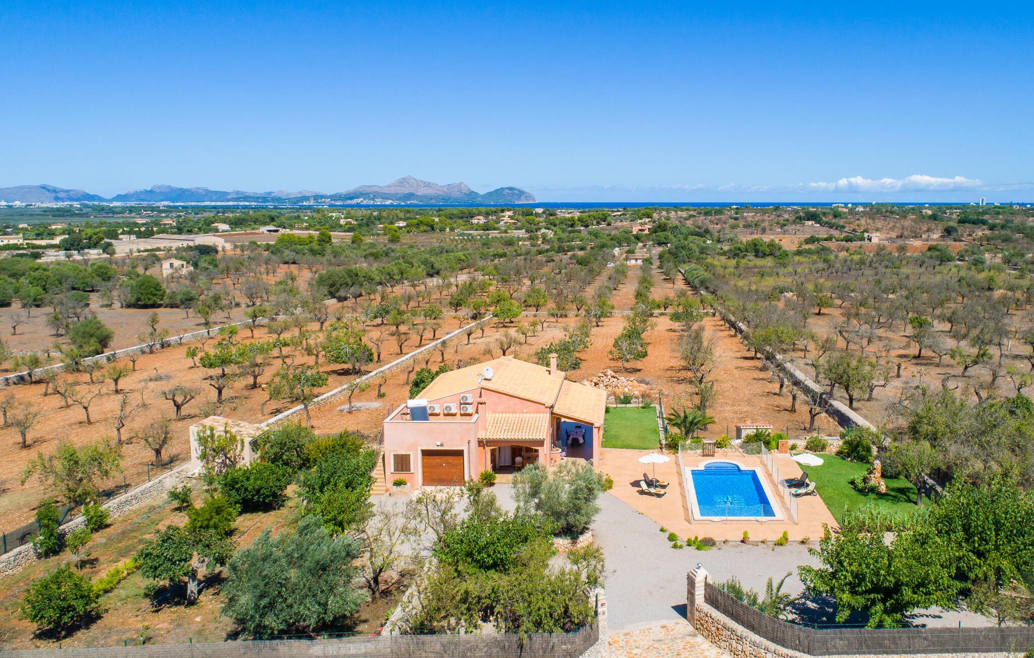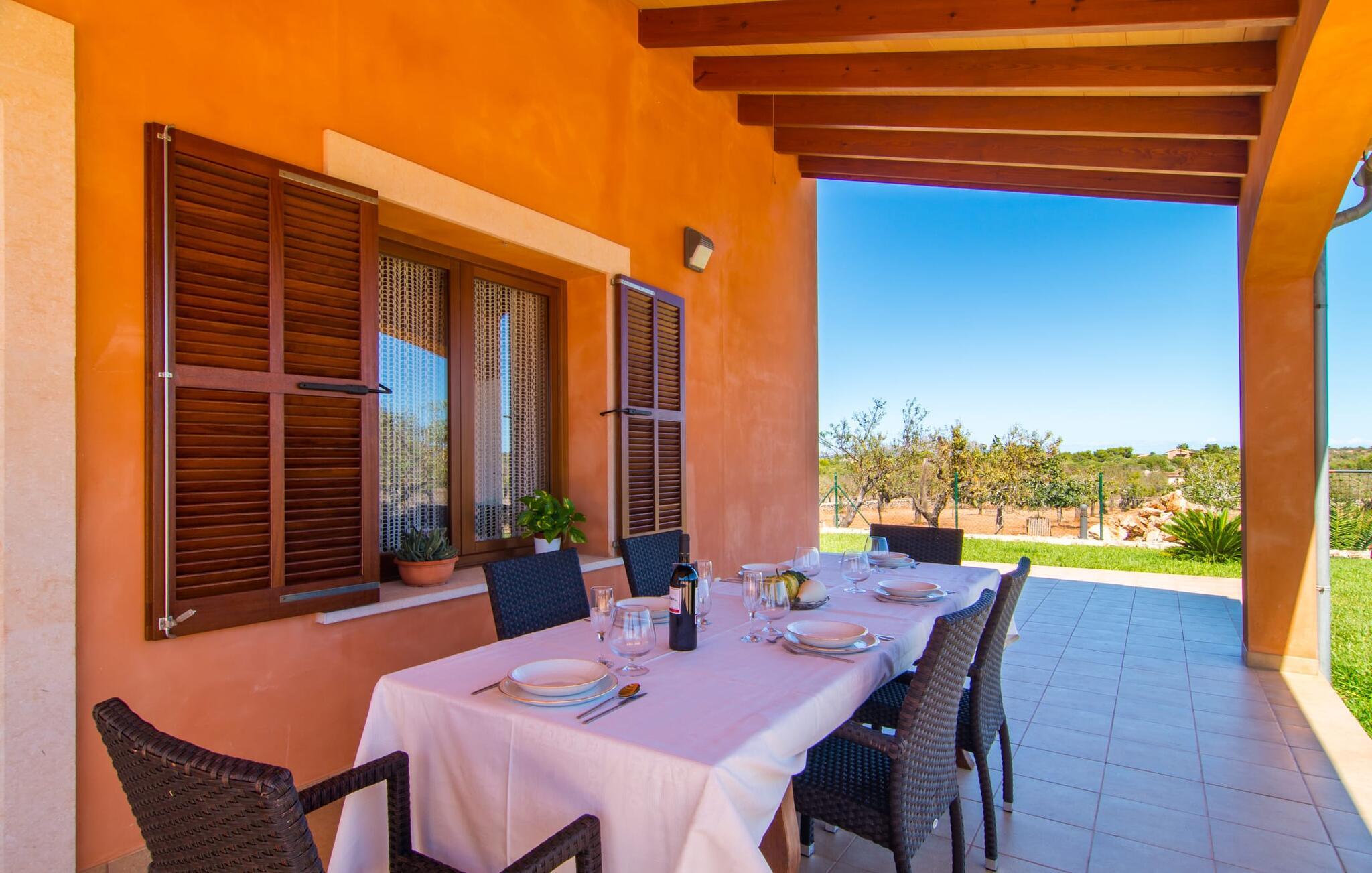 Nicht nur das Äußere lässt Sie rundum sorgenfrei zurück, auch das Innere des Hauses bietet nahezu alles, was das Herz begehrt. Die klassisch-mallorquinische Küche mit angrenzendem Wohn-/Essbereich bietet Platz für viele Dinge gleichzeitig. Während eine Person in der Küche ein leckeres Abendessen zaubert, kann eine andere dafür sorgen, dass sie kein wichtiges Spiel oder ihre Lieblingsserie im Fernsehen verpasst. Dank der ebenerdigen Bauweise der Villa sind die drei liebevoll eingerichteten Doppelzimmer nicht weit entfernt, die Ihnen jeweils ein Lächeln aufs Gesicht zaubern werden. Ruhige Nächte garantieren auch die Moskitonetze an den Fenstern, die vier tragbaren Ventilatoren und die Klimaanlage. Doch auch an kälteren Tagen erfüllt diese familienfreundliche Villa keine Wünsche und sorgt dank des Kamins für eine wunderbare Atmosphäre. Dies ist ein fantastischer Ort zum Entspannen und Erholen, perfekt für Familien mit Kindern.